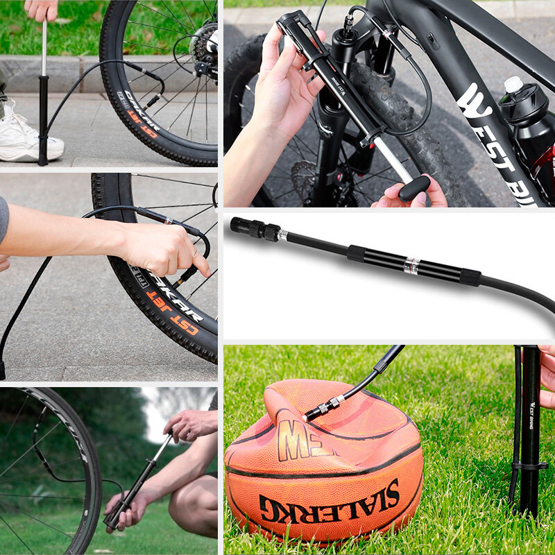 Купить Насос для велосипеда ручной West Biking ниппель Schrader/Presta, с Т-образной ручкой, манометром, креплением