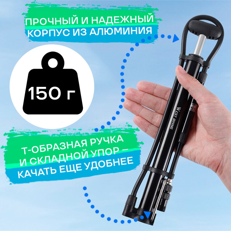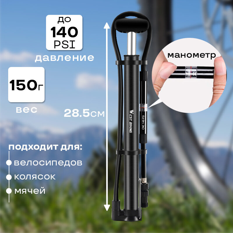 Насос для велосипеда ручной West Biking ниппель Schrader/Presta, с Т-образной ручкой, манометром, креплением интересное: