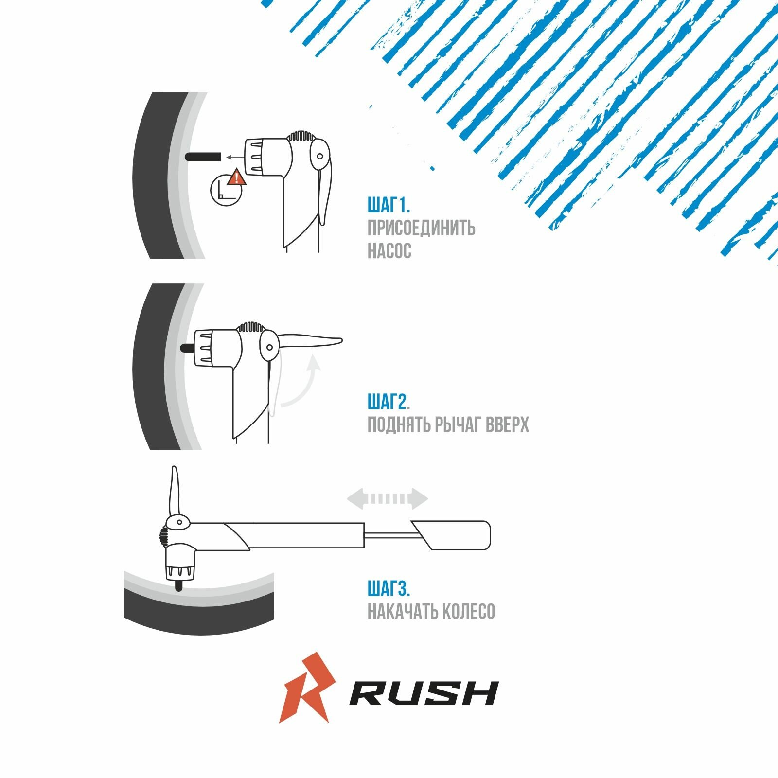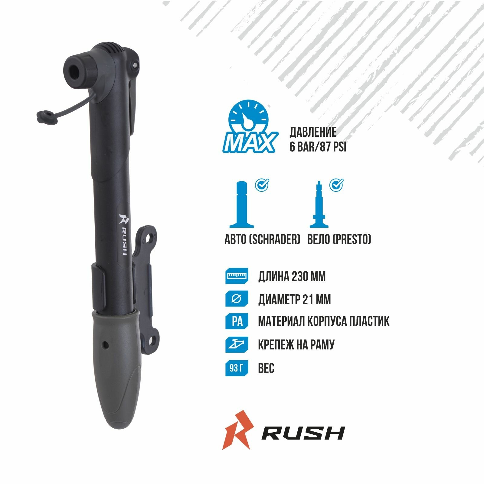 Насос ручной велосипедный 22x230 мм RUSH HOUR. Шланг велонасоса под ниппель AV/FV. интересное: