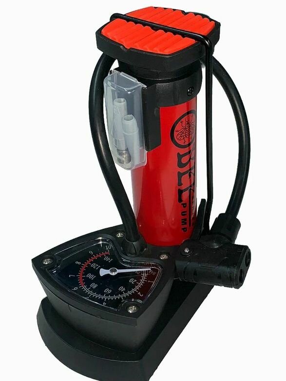 Насос BEE PUMP ножной, под ниппель AV/FV, с манометром, 1 баллон, черно-красный интересное: