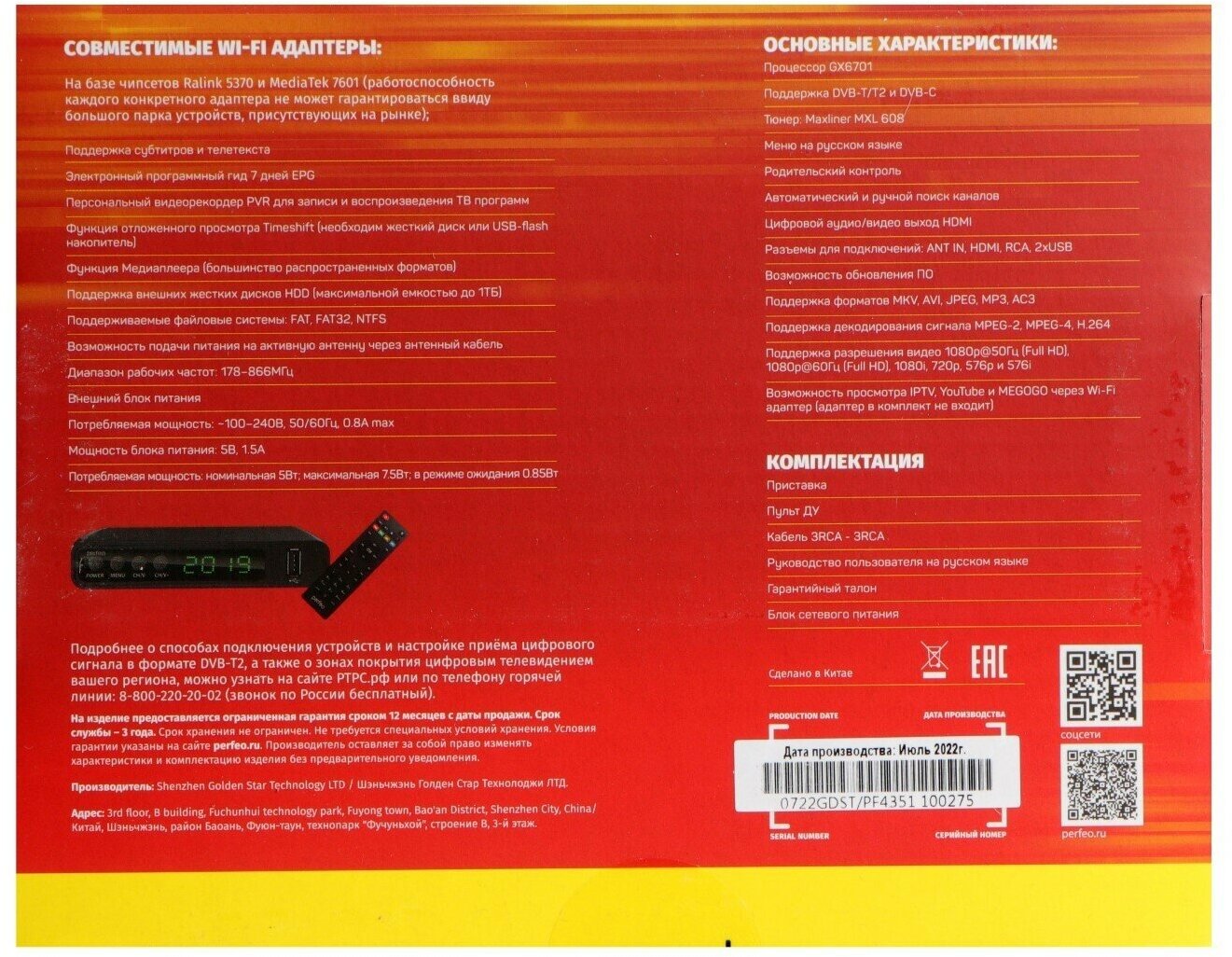 Купить Ресивер DVB-T2/C Perfeo PF_A4351 приставка "STREAM" для цифрового TV, (Wi-Fi-опционно) IPTV, HDMI, 2 USB, DolbyDigital, пульт ДУ