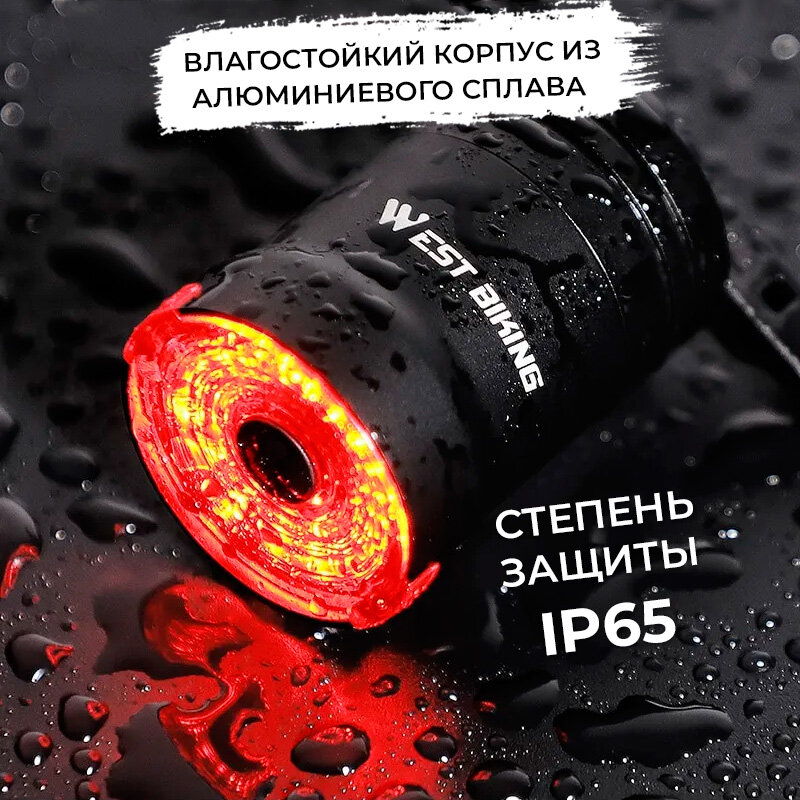 Фонарь для велосипеда задний, аккумуляторный, светодиодный West Biking с зарядкой по USB интересное: