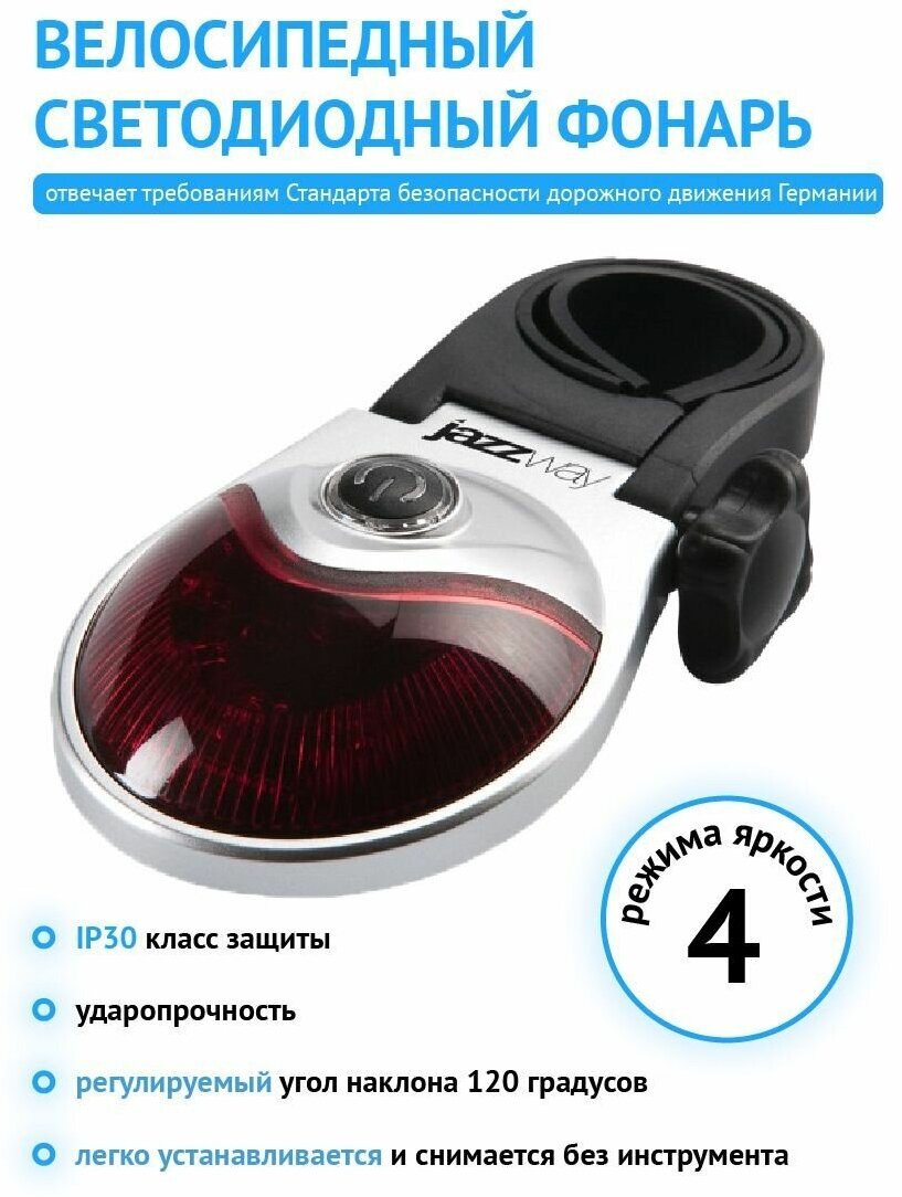 Фонарь светодиодный велосипедный задний Jazzway B-R-L05/ Фонарь на велосипед с регулируемым углом наклона 120 градусов интересное: