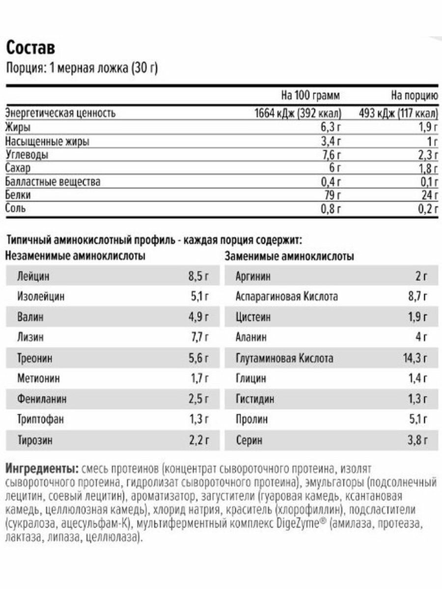 Сыворотка сама по себе хорошо усваивается, так еще и мультиферментный комплекс добавили. Вкус приятный, хотя малину с белым шоколадом заказал по ошибке и думал не понравится, а на деле очень приятно пахнет и вкус на высоте - очень рекомендую попробовать, Я вкуснее протеина еще не пробовал. За такую цену идеальный выбор. |
