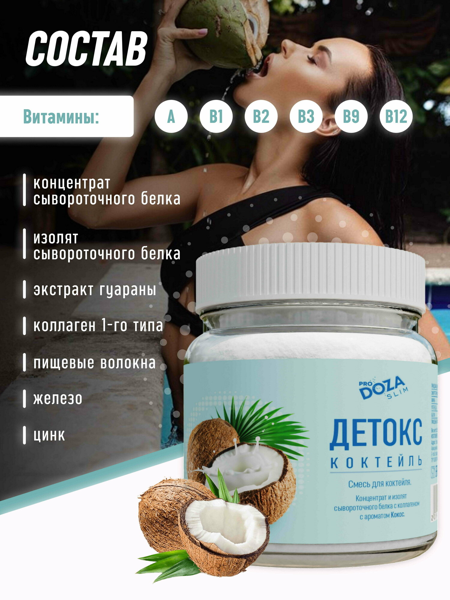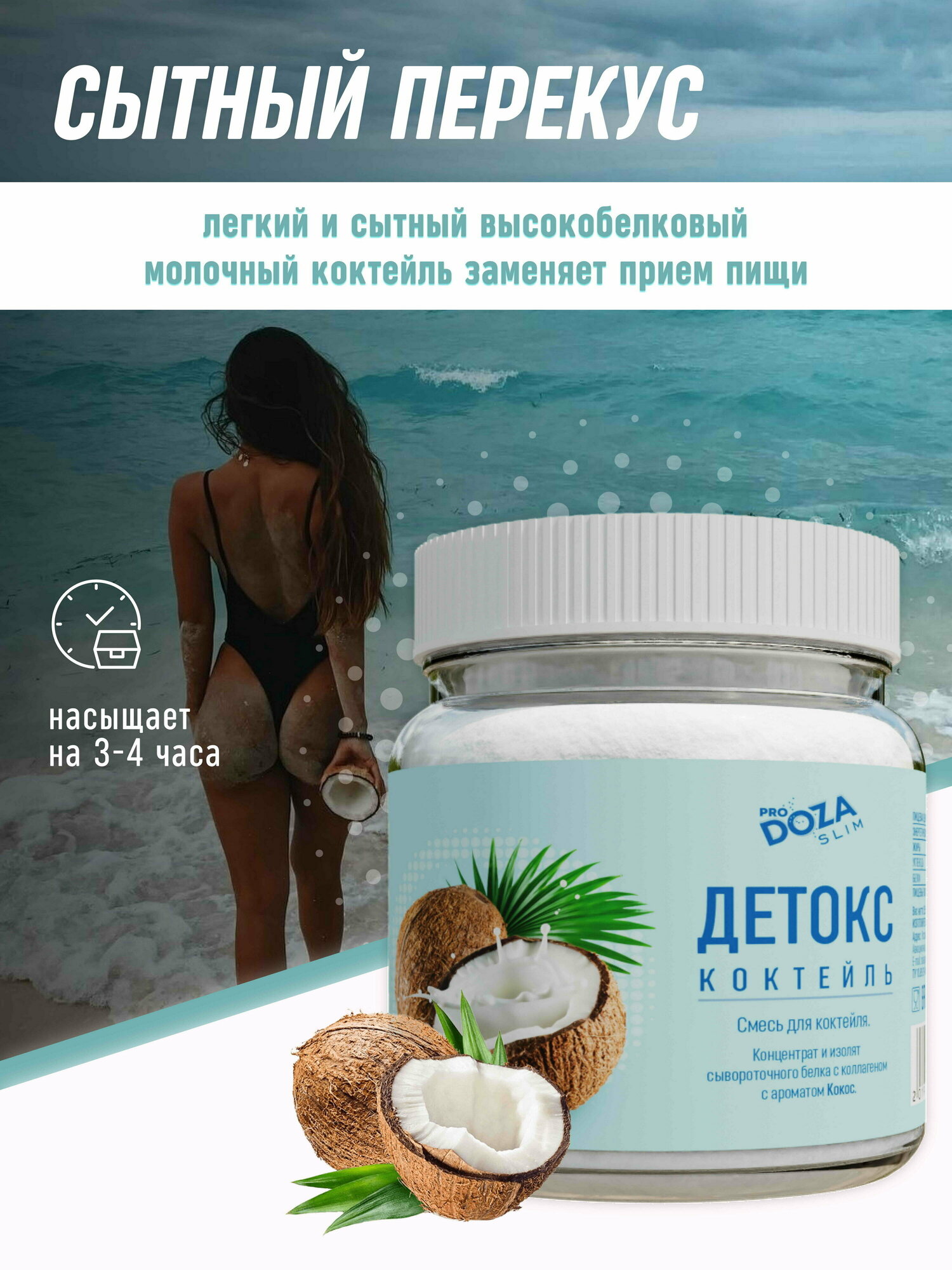 Белковый коктейль детокс ProDOZA SLIM без сахара Кокос, 255 г. интересное: