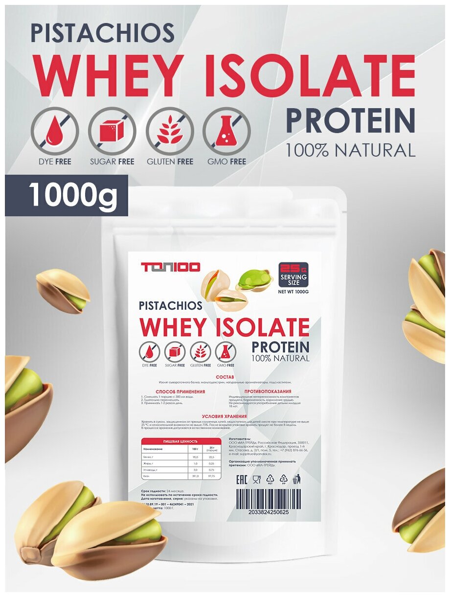 Купить TOP100 Протеин изолят сывороточного белка со вкусом Фисташка 1000г