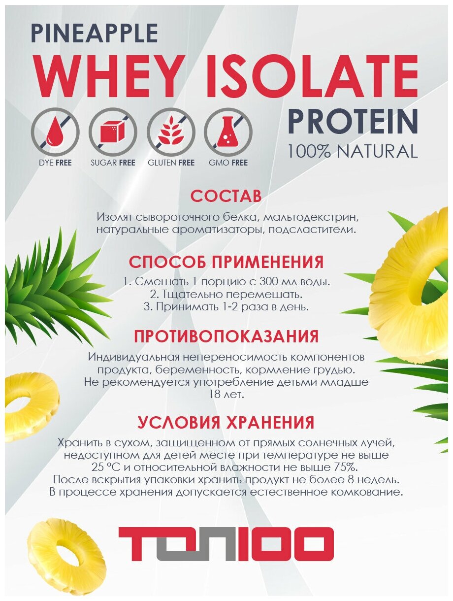 Купить TOP100 Протеин изолят сывороточного белка со вкусом Ананас 1000г