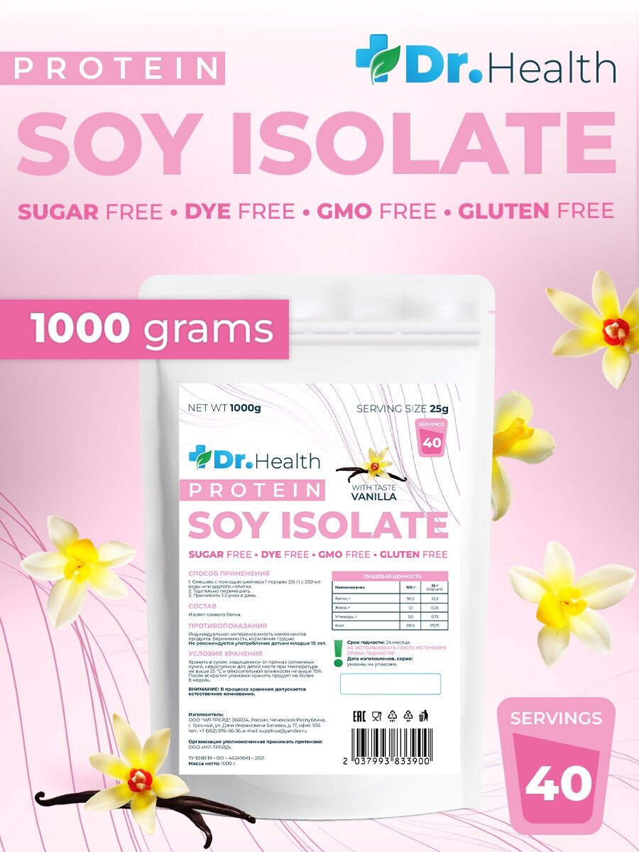 Dr.Health Изолят соевого белка 1000г со вкусом ваниль интересное:
