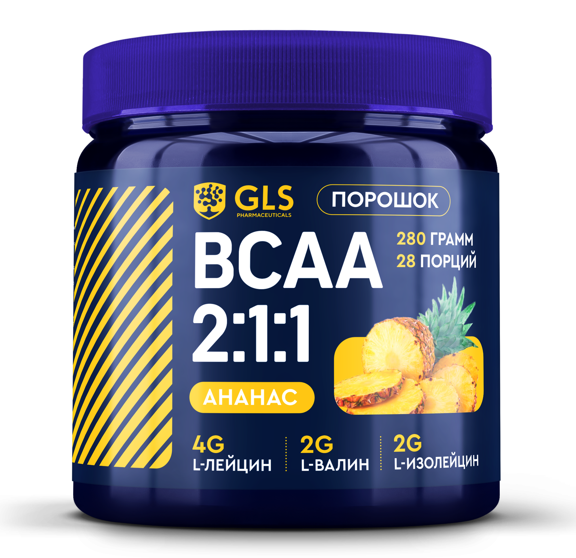 GLS Pharmaceuticals BCAA 2:1:1 аминокислоты для набора массы GLS экзотический микс, 280 г