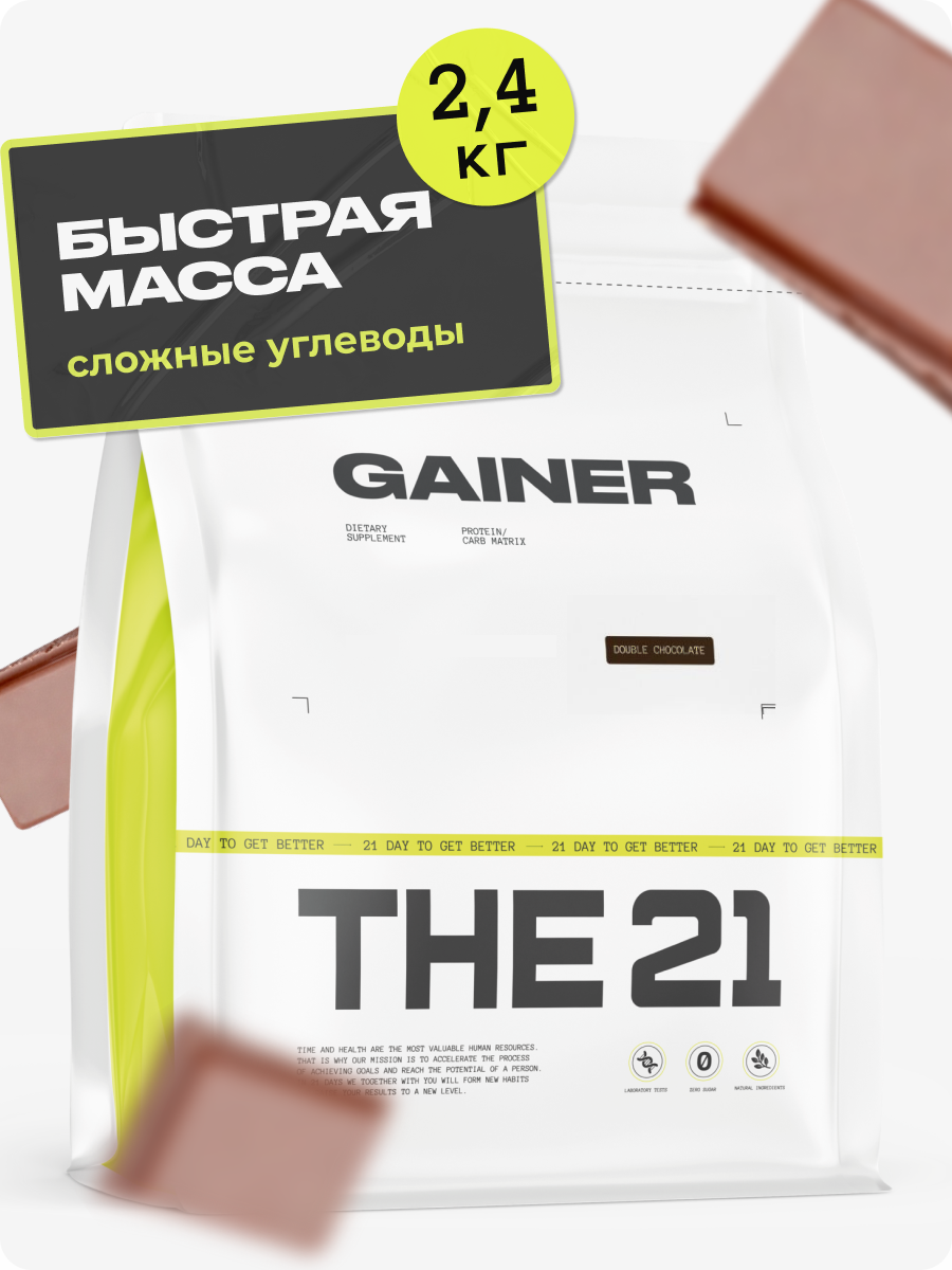 THE 21 Gainer Гейнер Шоколад / Gainer / Спортивное питание для набора массы веса медленными быстрыми углеводами, 2,4кг