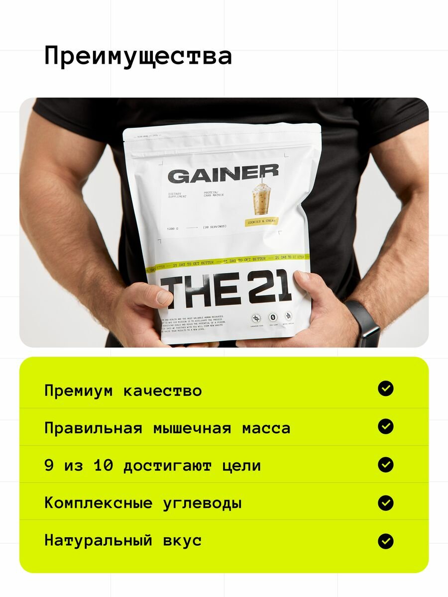 THE 21 Gainer Гейнер Ванильное мороженое/Gainer/Спортивное питание для набора массы медленными быстрыми углеводами,2,4кг