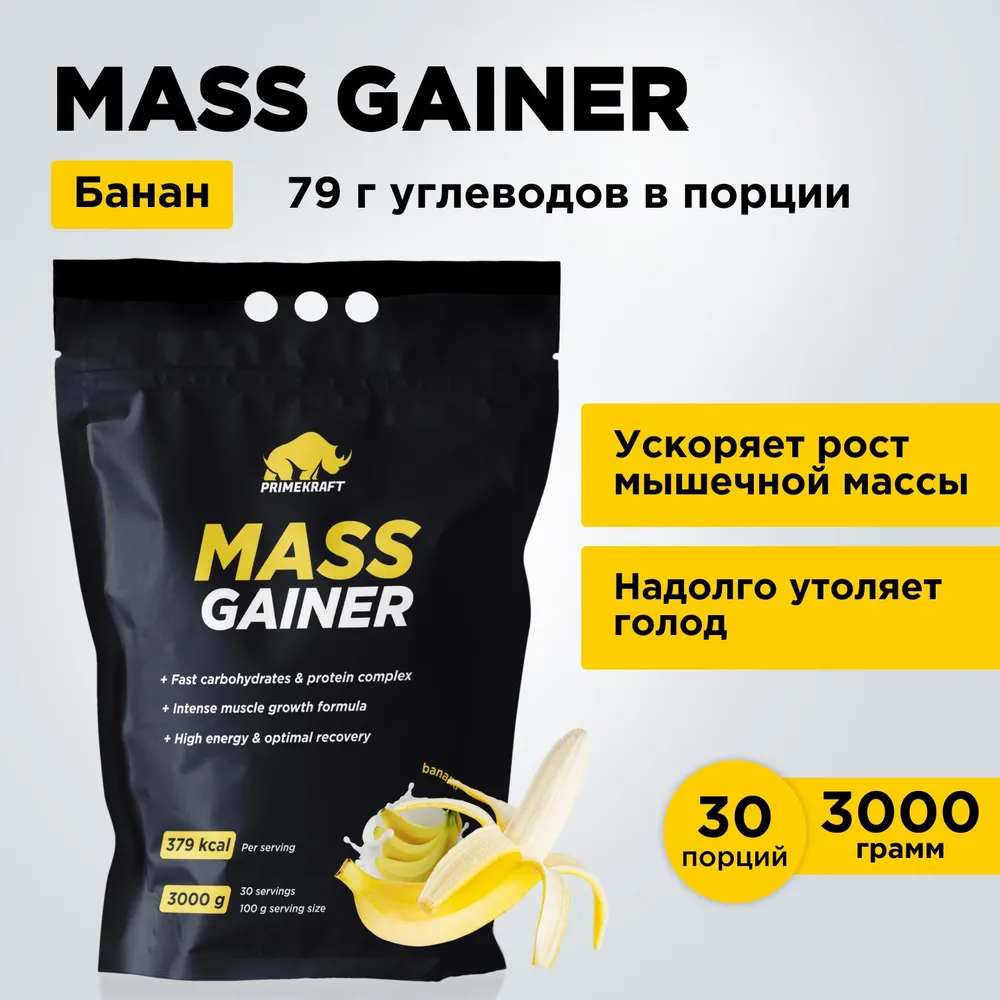 Купить Гейнер белково-углеводный PRIMEKRAFT/ MASS GAINER для набора массы со вкусом «Банан», 3 кг, банка