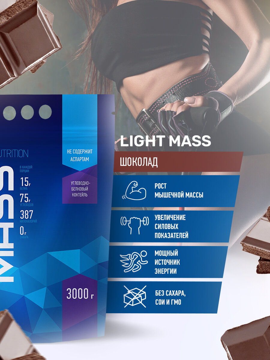 Гейнер R-Line Light Mass (3000 г) шоколад 3кг интересное:
