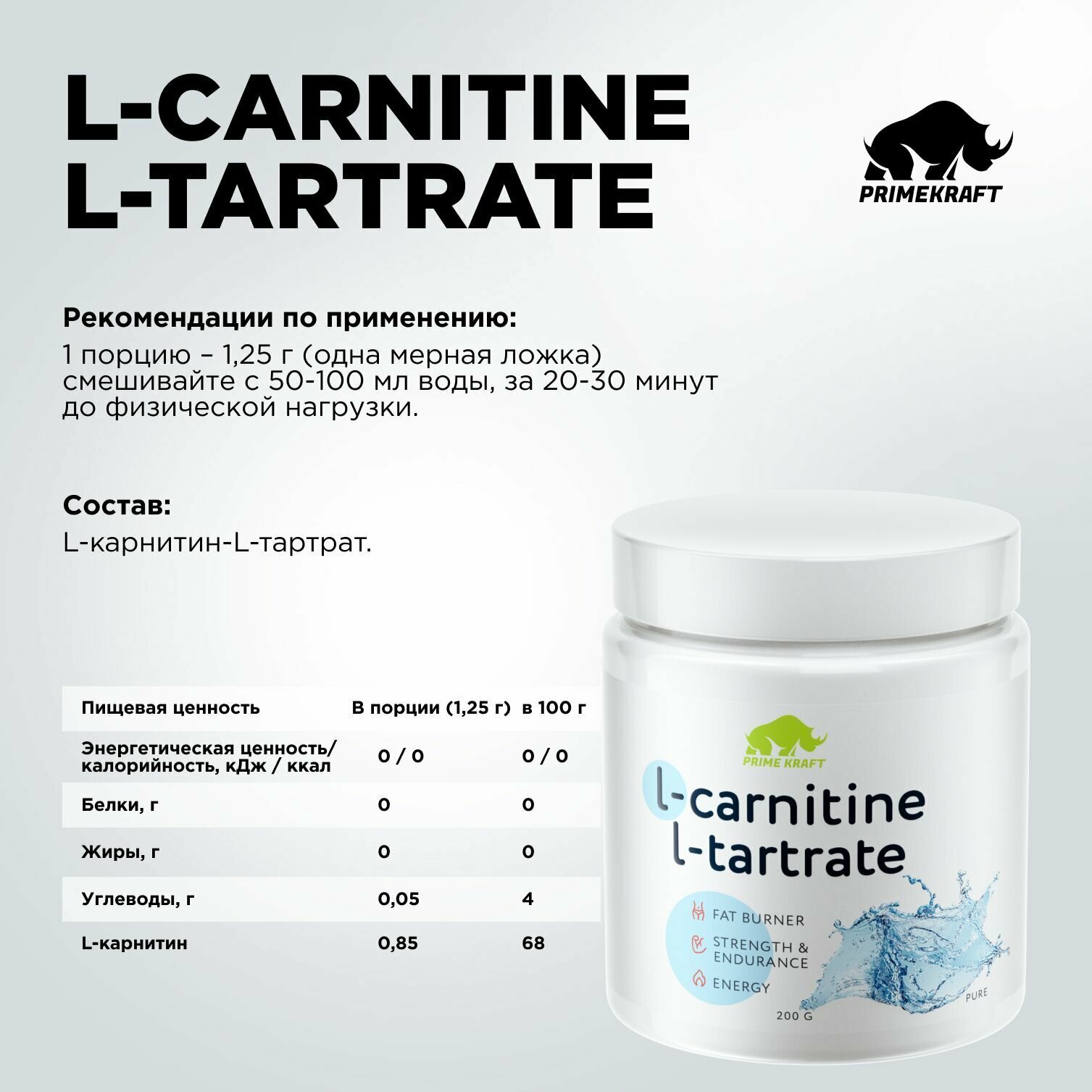 L-карнитин PRIME KRAFT L-Carnitine L-Tartrate, порошок , 200гр, нейтральный [яб027787]