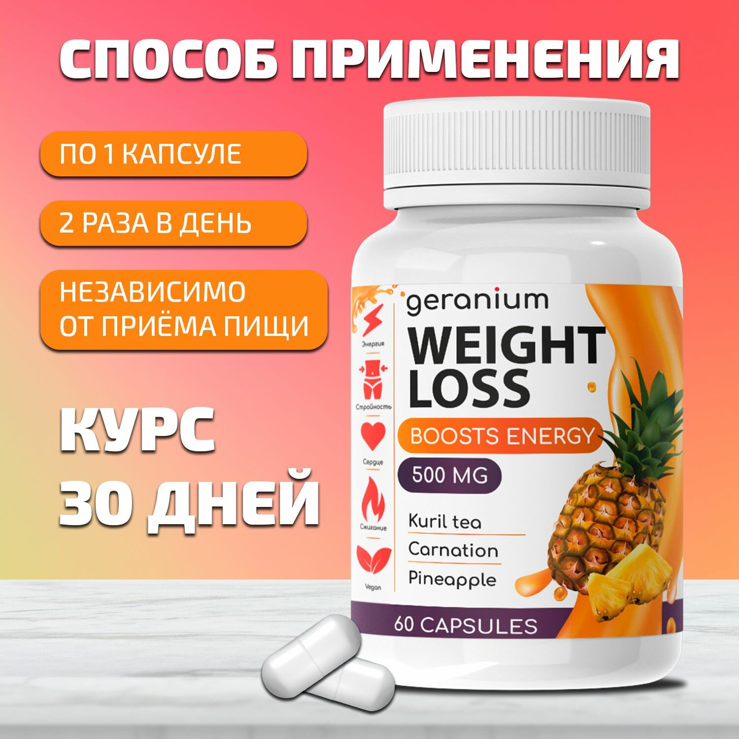 Купить "Geranium Weight loss" Капсулы для похудения, Гераниум жиросжигатель