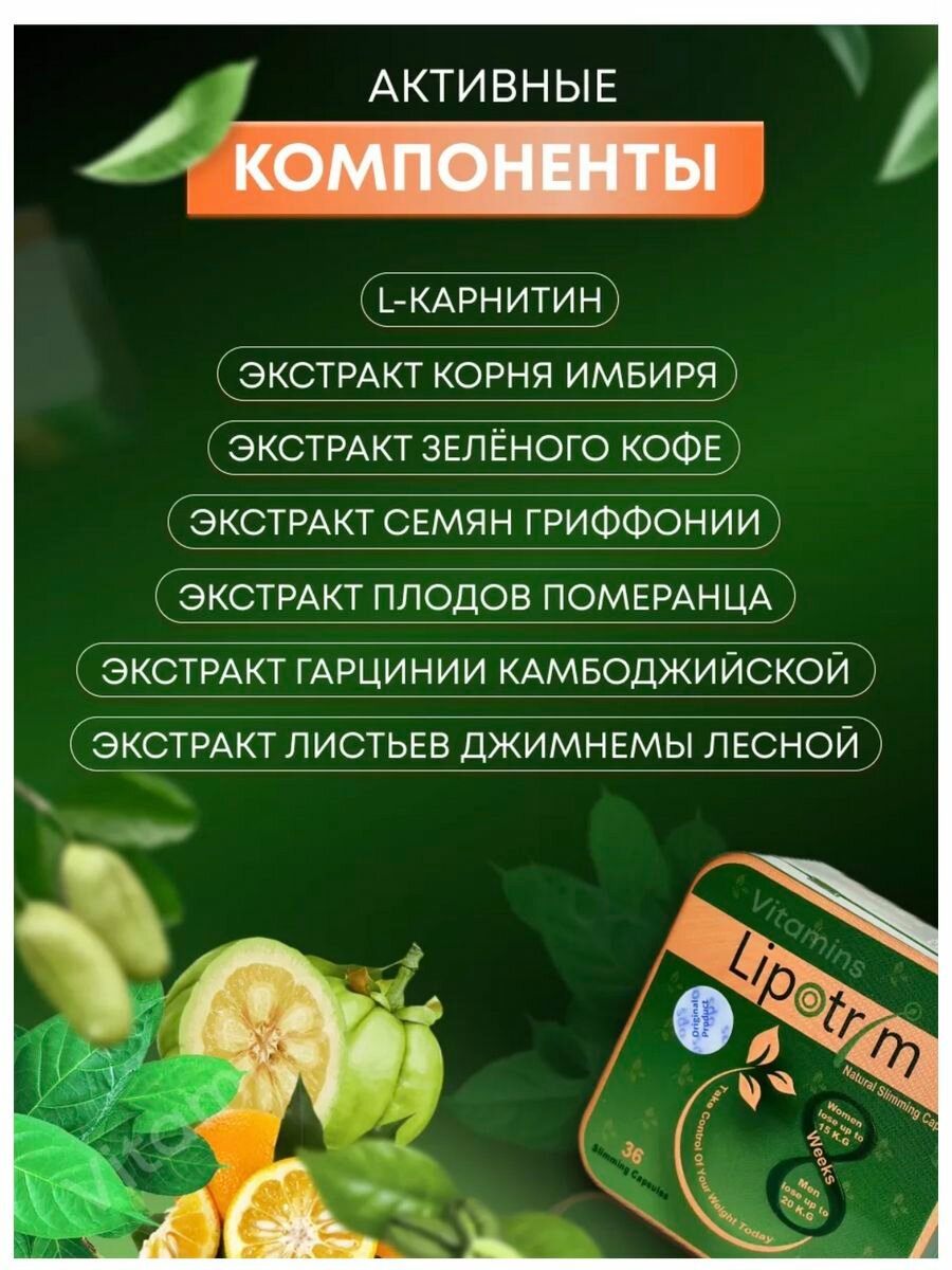 Жиросжигатели Плоский живот Lipotrim ж\б квадрат 36 капсул