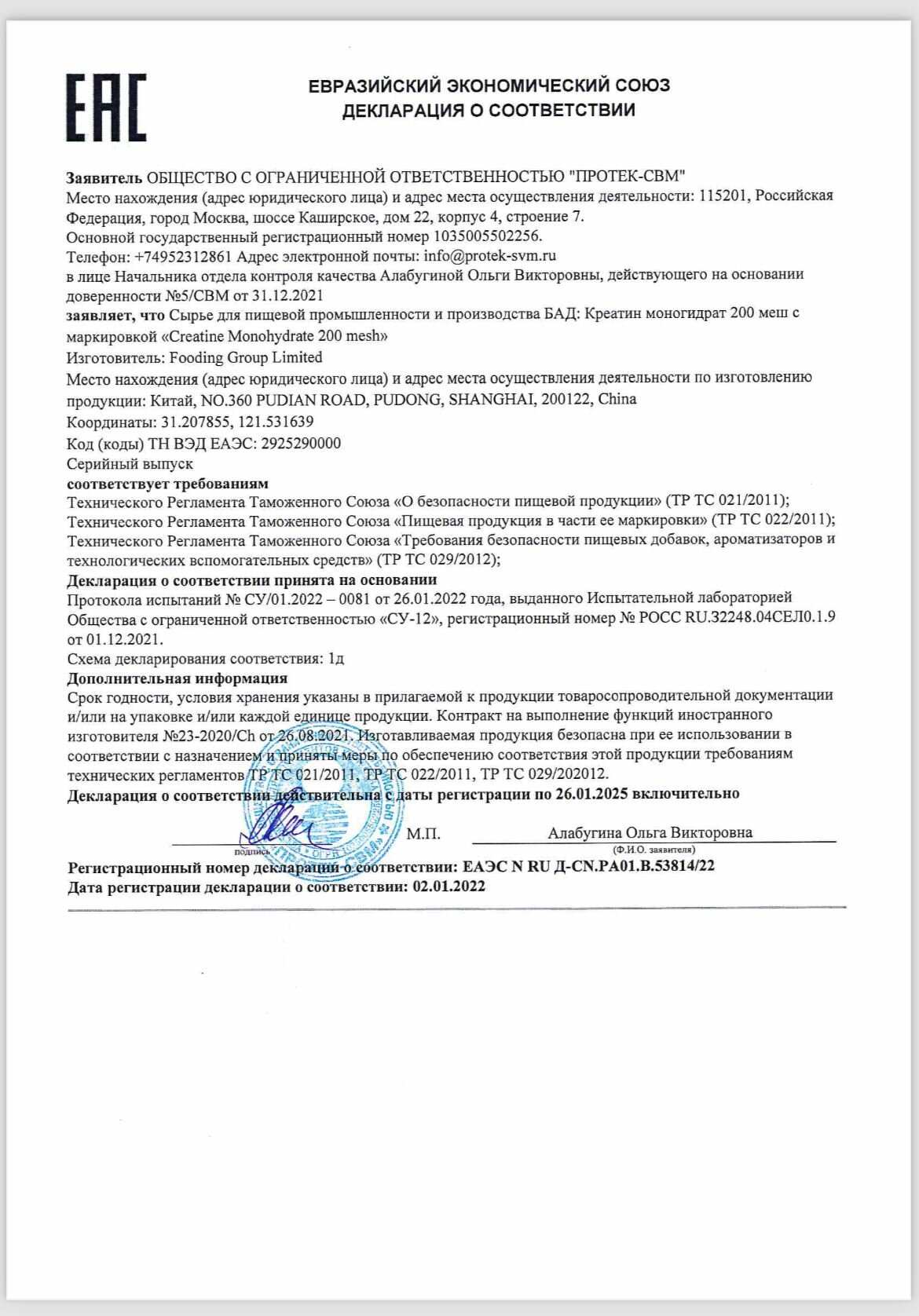 | Форма креатина | креатин моногидрат |