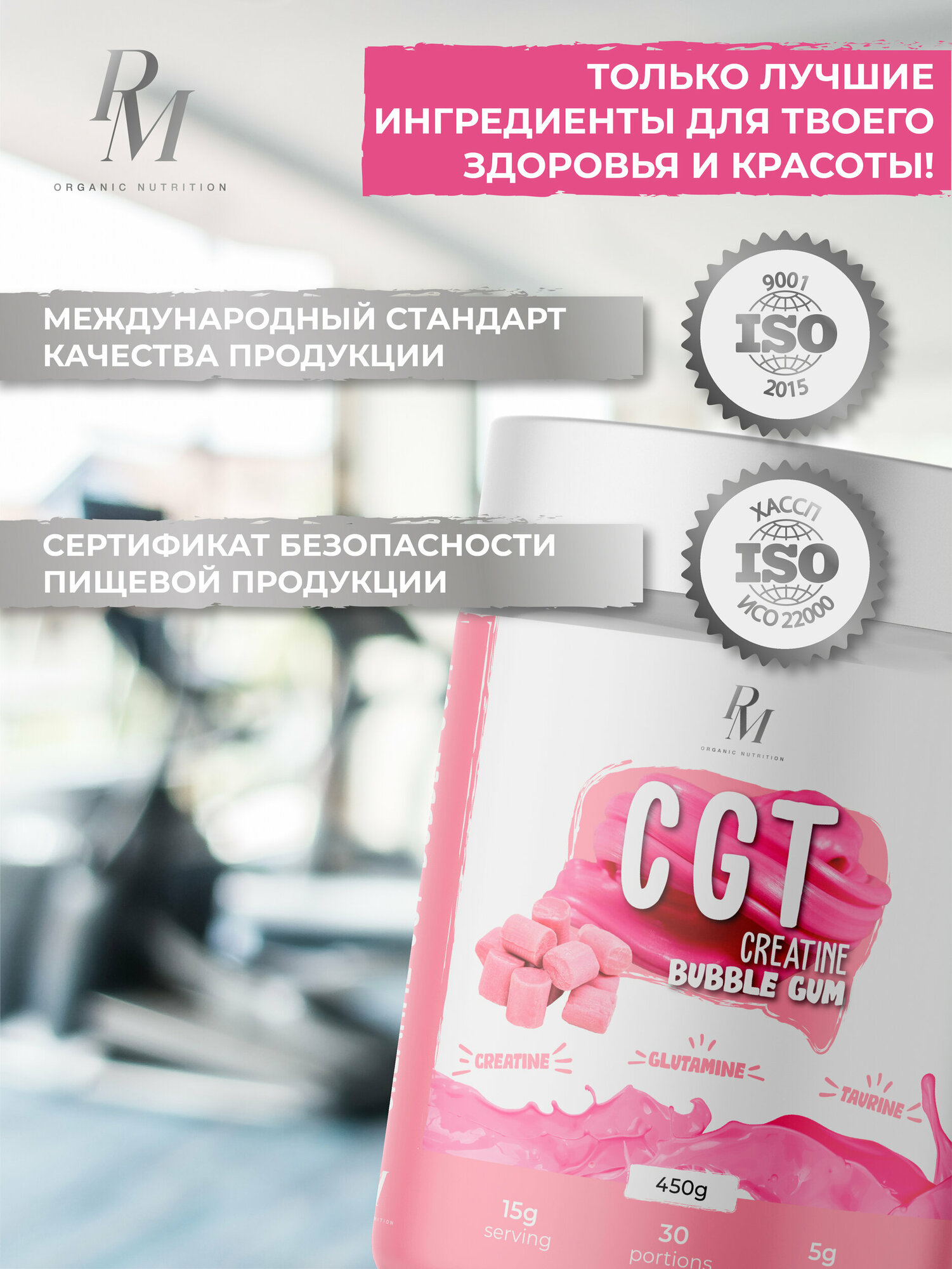 Купить Креатин с таурином и глутамином, PM-Organic Nutrition, Бабл-гам, 450гр