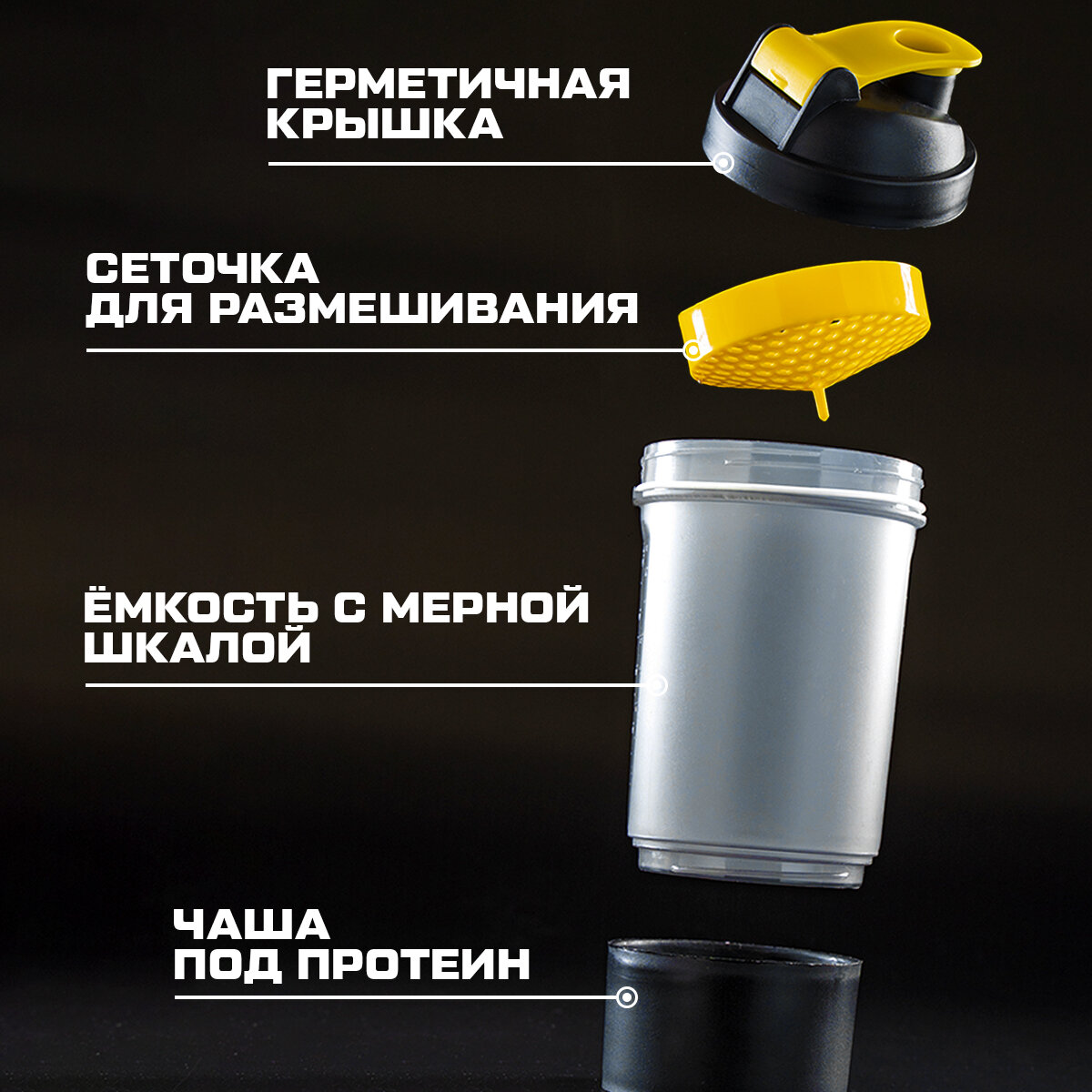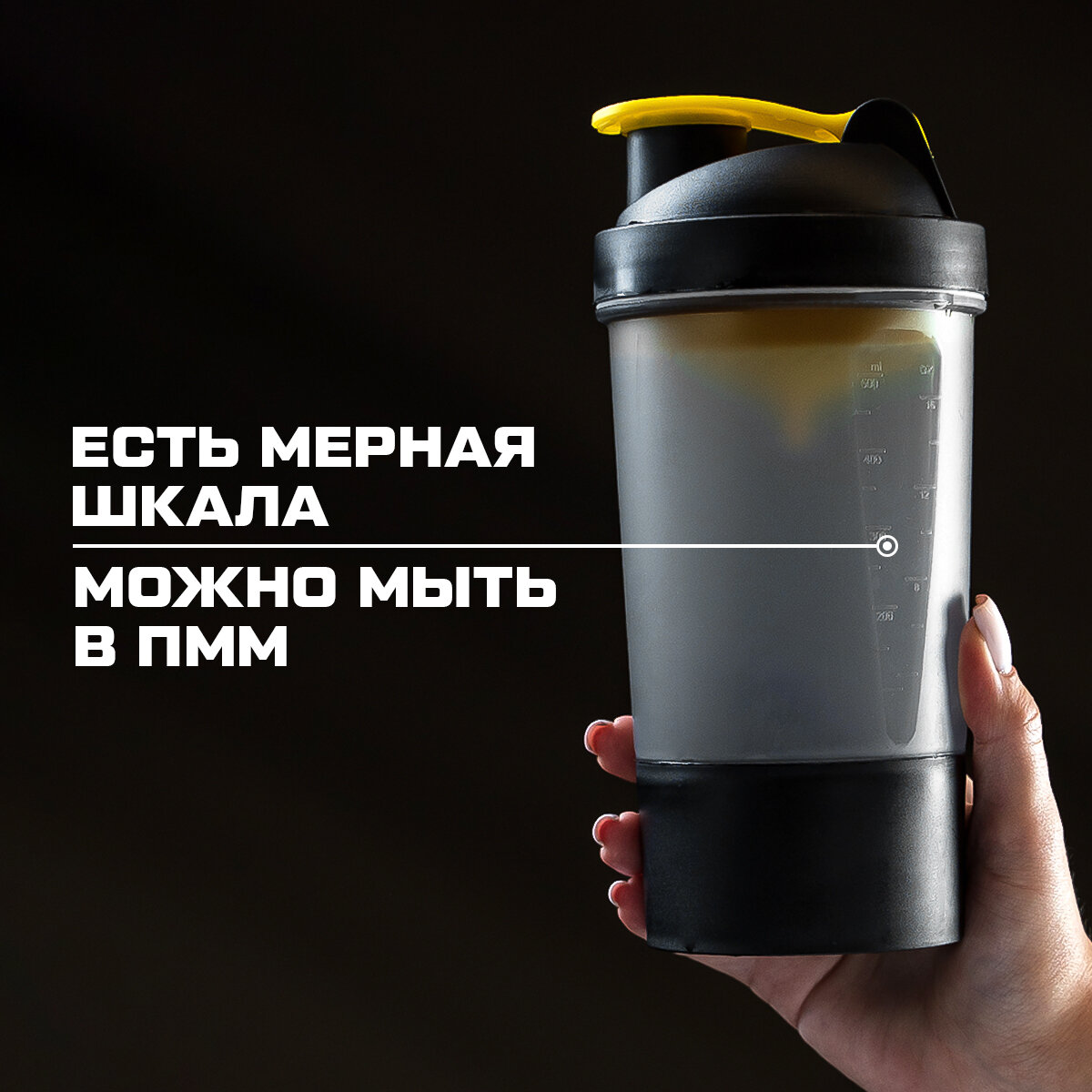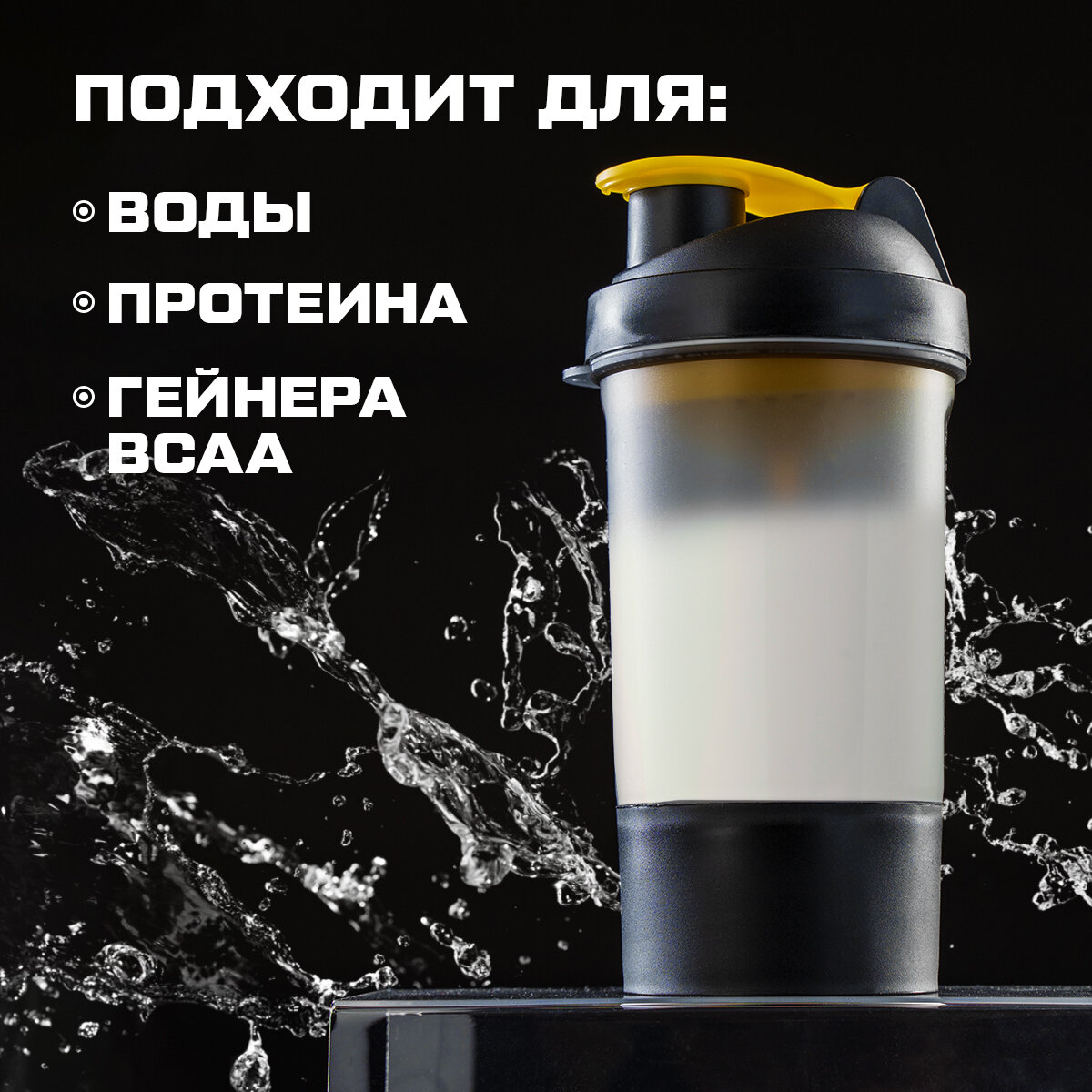 СохранитьШейкер спортивный SVOBODA VOLI, черно - желтый, с чашей под протеин 500 мл интересное: