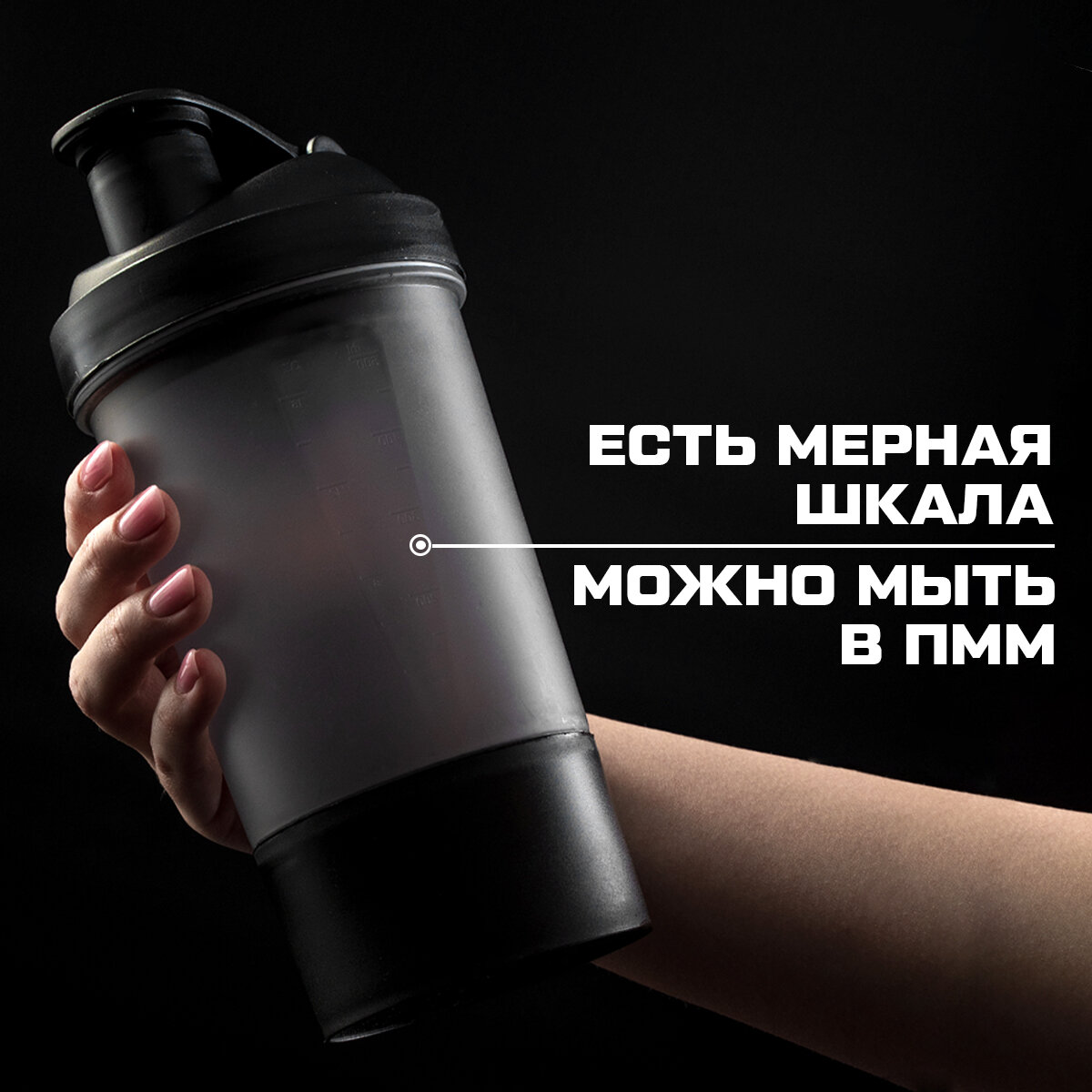 Шейкер спортивный с чашей под протеин, чёрный, 500 мл