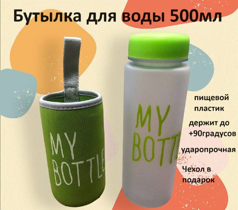 Бутылка для воды пластиковая "Просто бутылка" (в чехле)Зеленый интересное:
