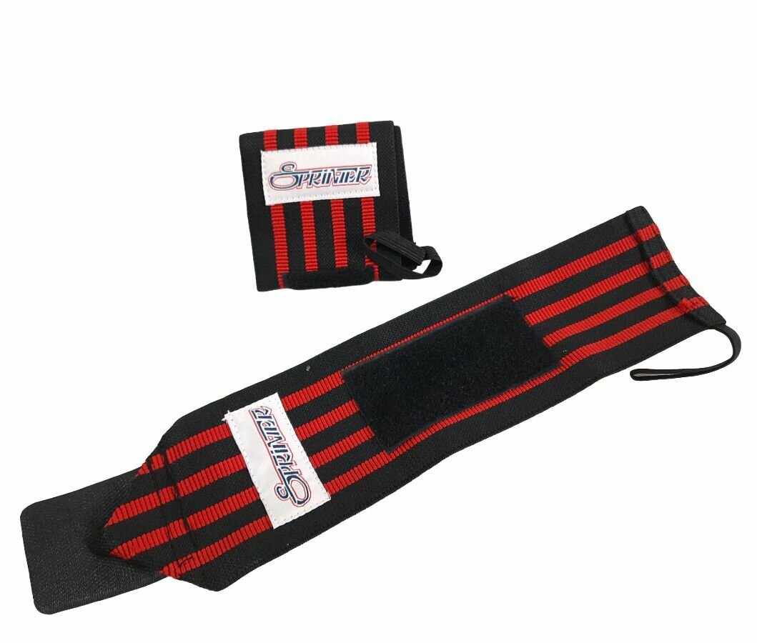 Купить Напульсники красные для занятий тяжёлой атлетикой - 2 шт / с лямкой для тяги