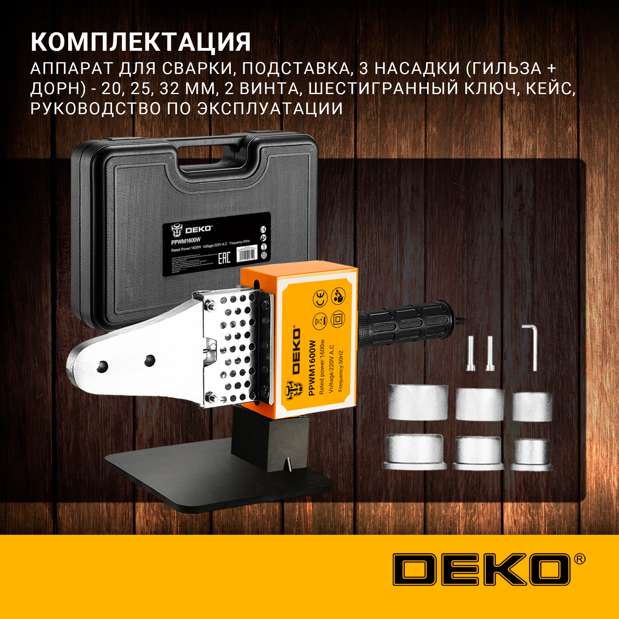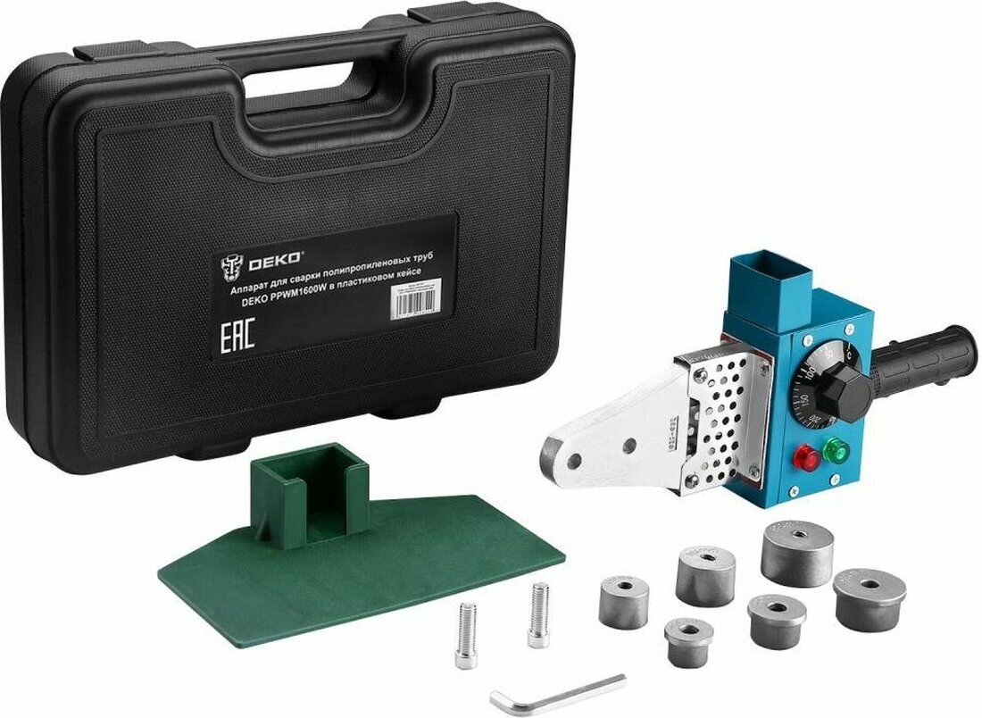 Аппарат для сварки полипропиленовых труб DEKO PPWM1600W в кейсе, 3 насадки (20-32 мм) 063-4203 интересное:
