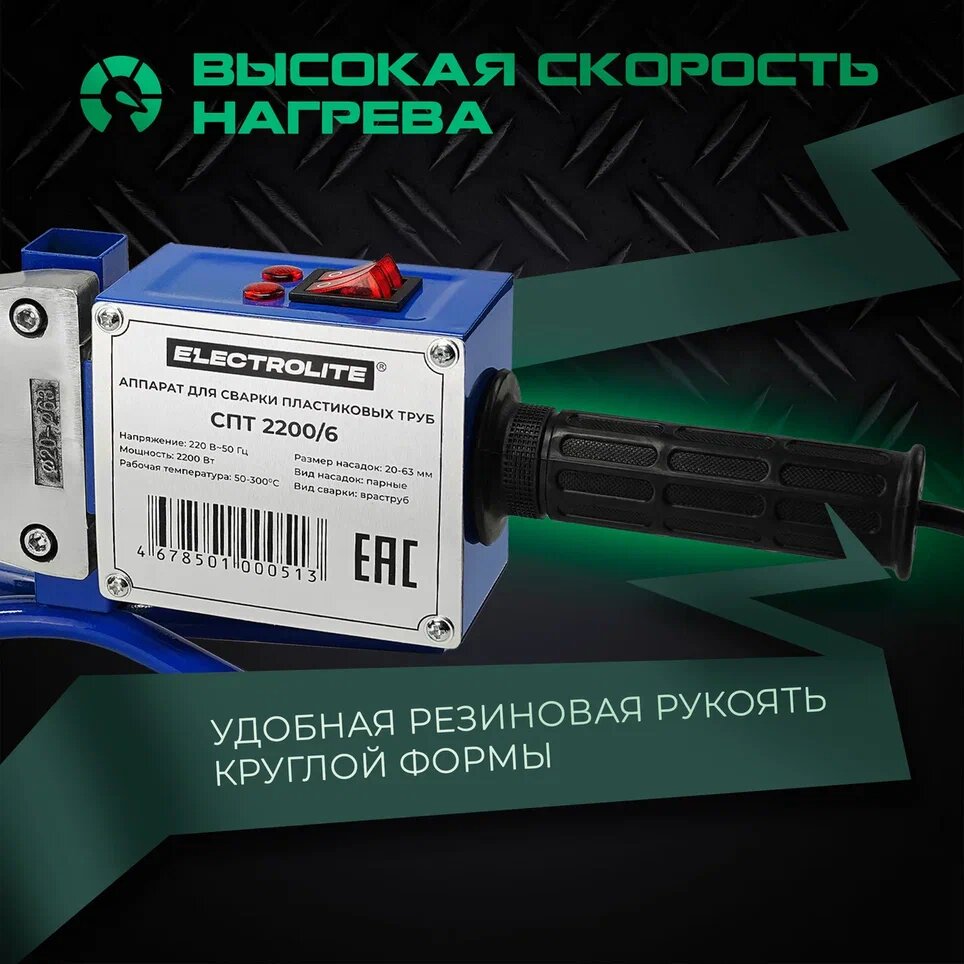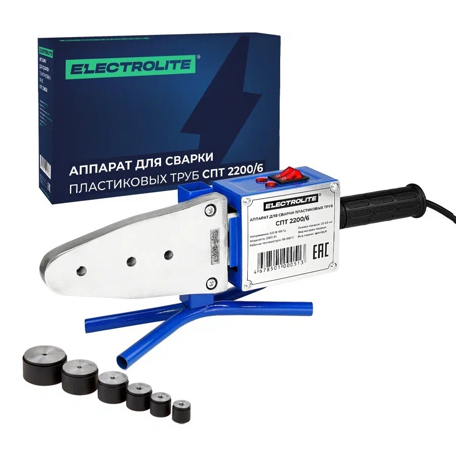 Купить Паяльник для пластиковых труб , Аппарат для сварки полипропиленовых труб, Паяльник ПВХ Electrolite СПТ 2200/6 ( 2200Вт, 20-63мм, регулировка температуры )