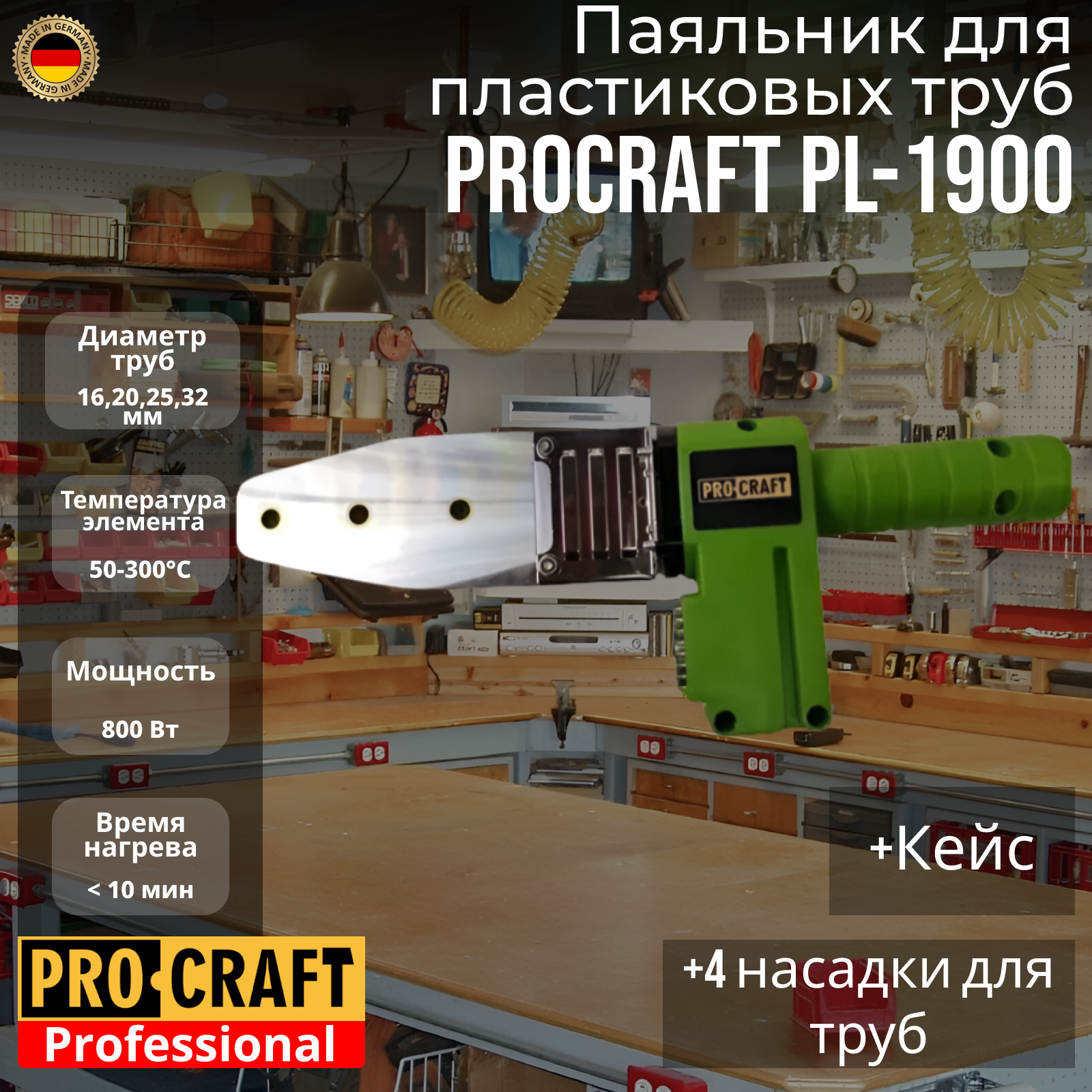 Паяльник для пластиковых труб Procraft PL 1900, 4 насадки 16,20,25,32мм, 300градусов, 800Вт интересное: