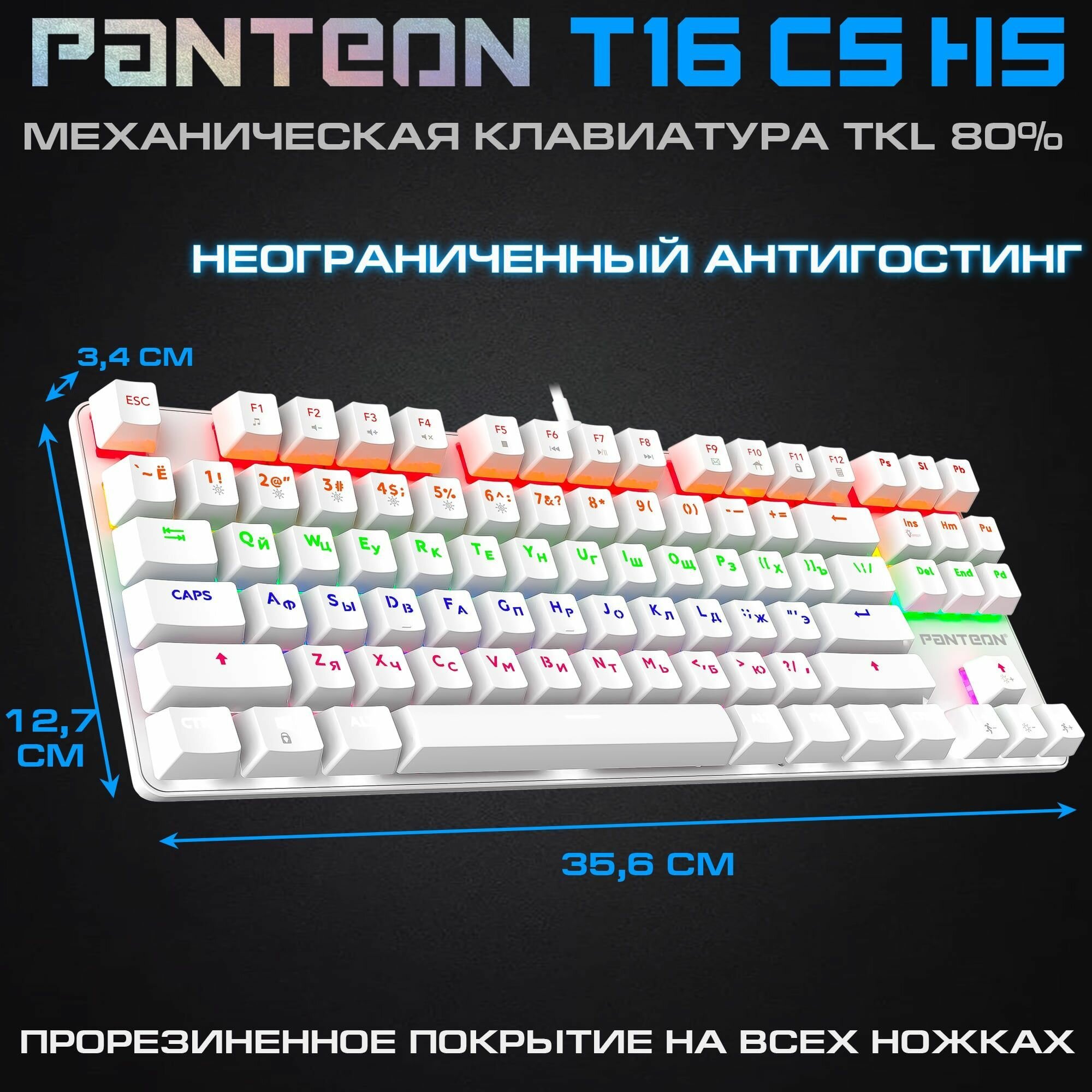 Механическая игровая клавиатура С led-подсветкой RAINBOW PANTEON T16 СS HS White