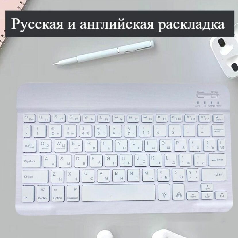 Беспроводная Bluetooth клавиатура ультратонкая Белая Русская и Английская раскладка WOGOW интересное: