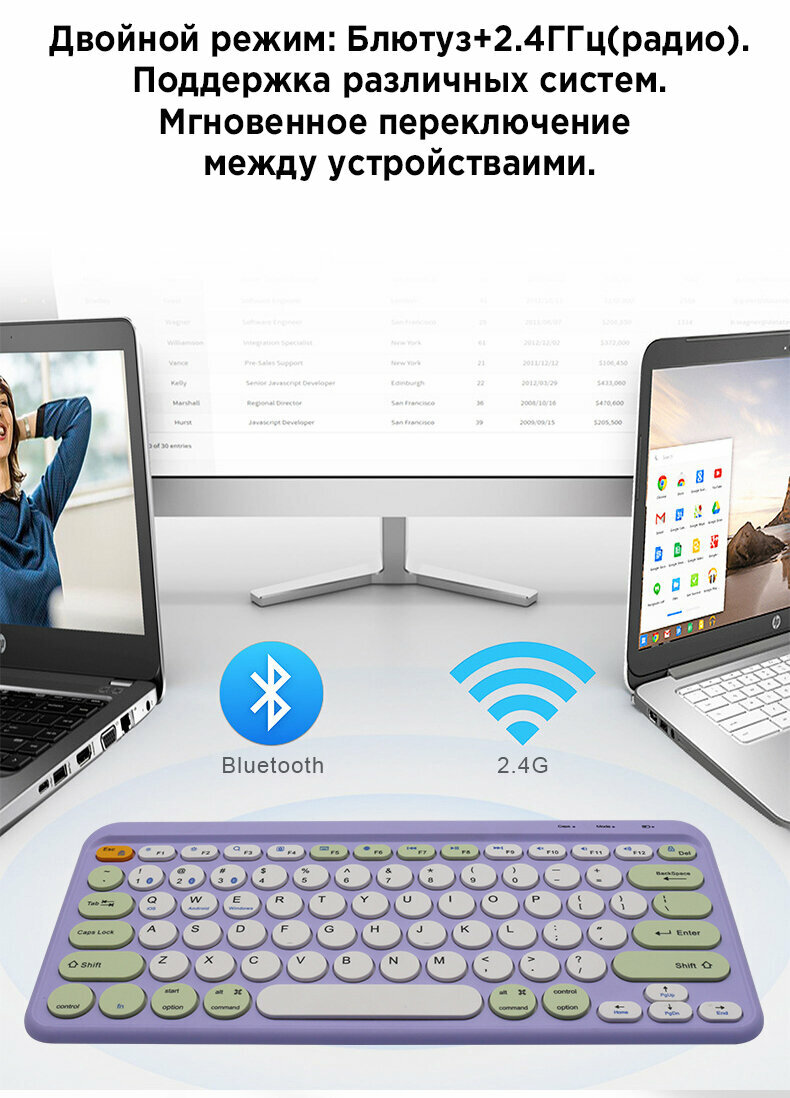 Клавиатура мини слим Bluetooth+2.4G(радио) 3005 +Русская раскладка, желто-оранжевая интересное: