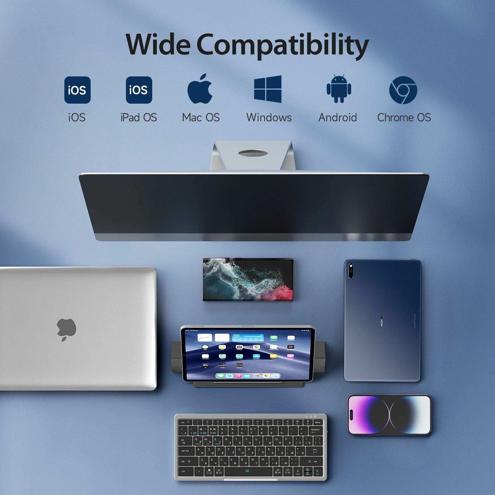 Купить Универсальная русская Bluetooth клавиатура Dux Ducis, OK Series, для планшетов, смартфонов, компьютеров, черная