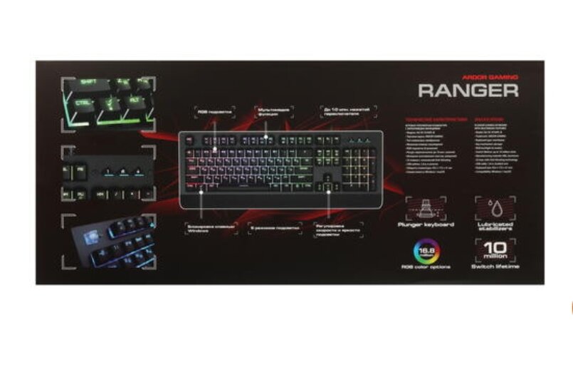 Ниже Вы можете прочитать отзывы на Игровая механическая клавиатура ARDOR GAMING Ranger, Kalih White Box,104 клавиши, RGB, проводная, чёрная., ознакомится с подробными характеристиками, посмотреть интересные обзоры и фотографии на Игровая механическая клавиатура ARDOR GAMING Ranger, Kalih White Box,104 клавиши, RGB, проводная, чёрная..