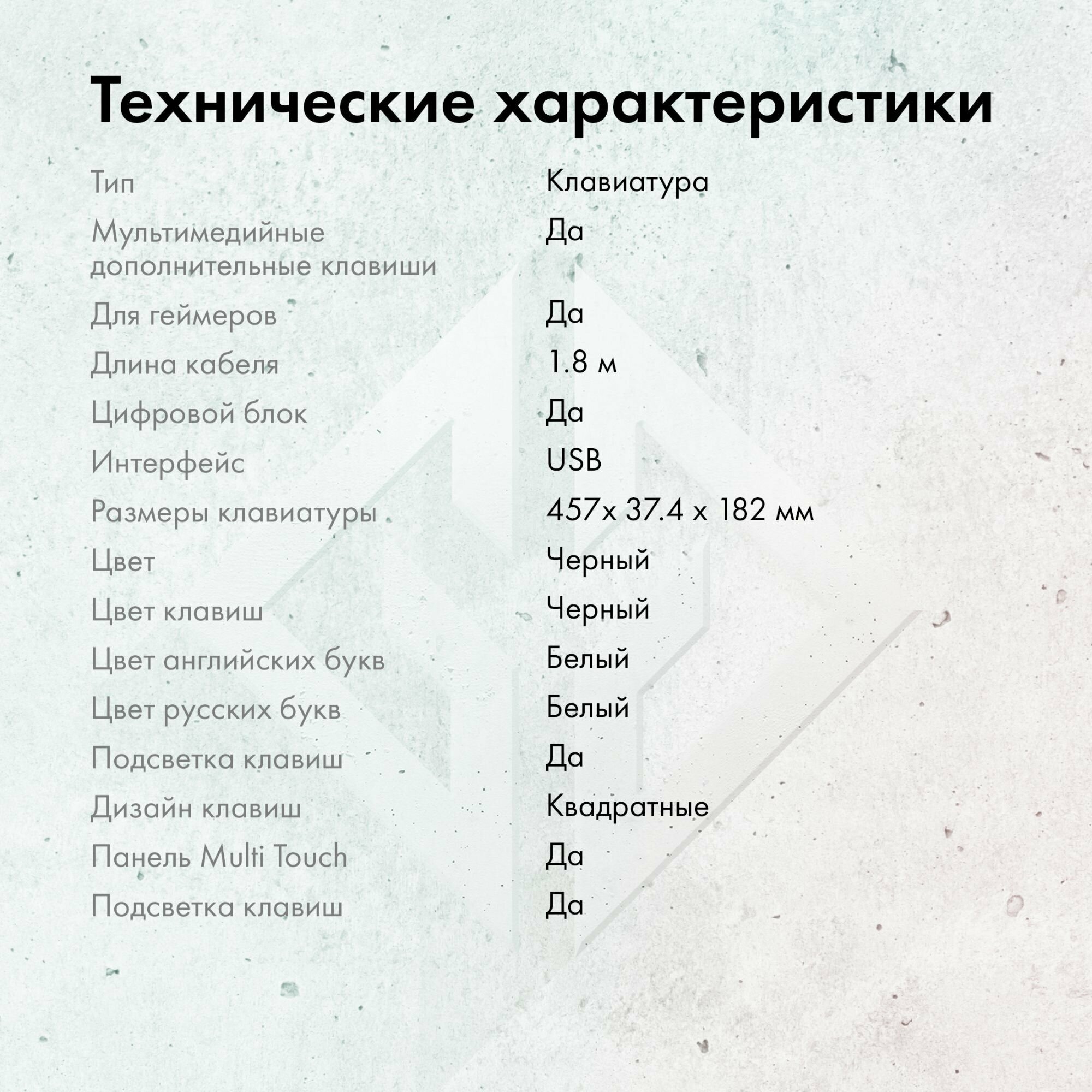| Комплектация | Клавиатура - 1шт, руководство пользователя - 1шт, инструкция по эксплуатации - 1шт. |