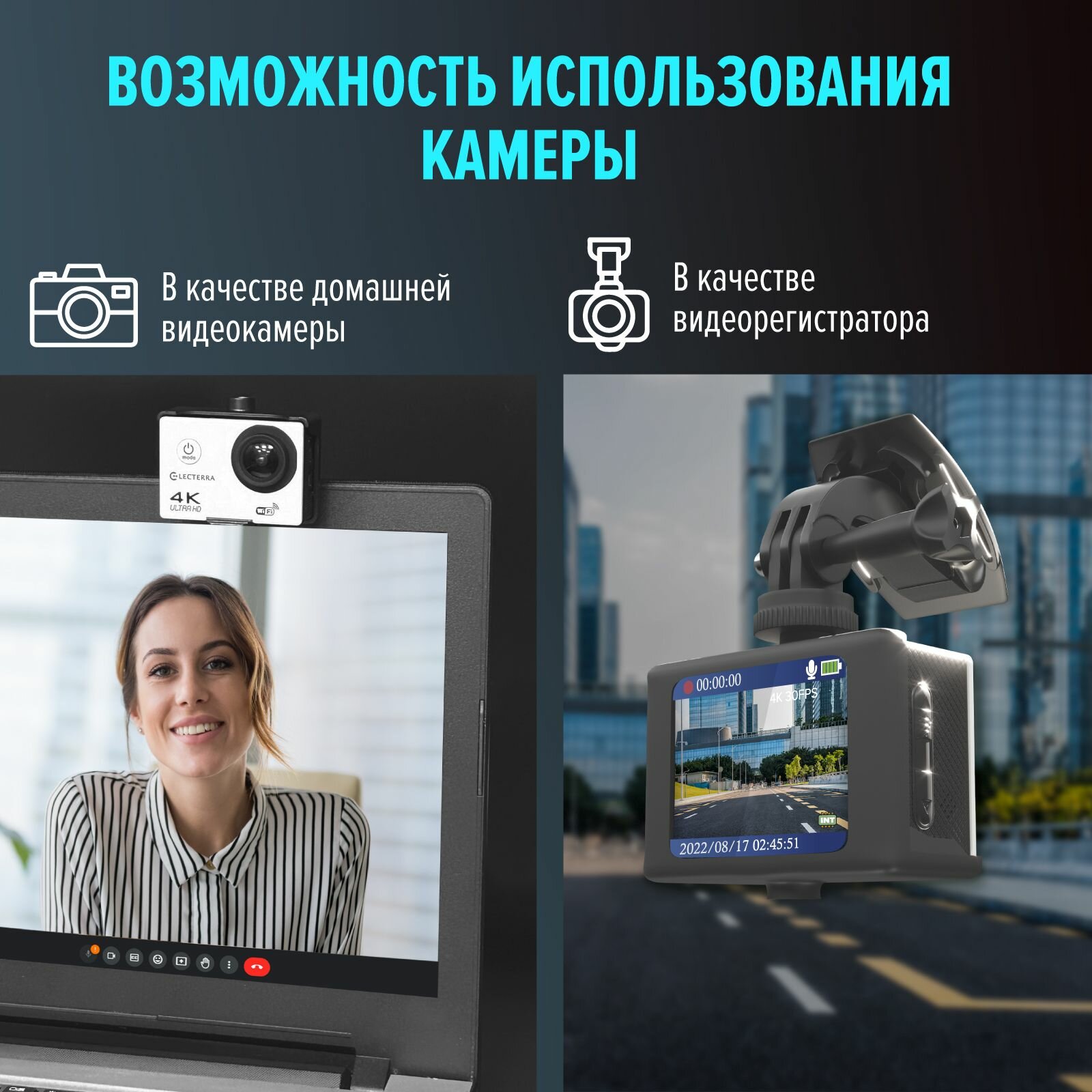 Экшн-камера Electerra. Водонепроницаемая экшн камера 4K с креплениями и защитным кейсом для дайвинга. Экшен камера с интерполяцией интересное: