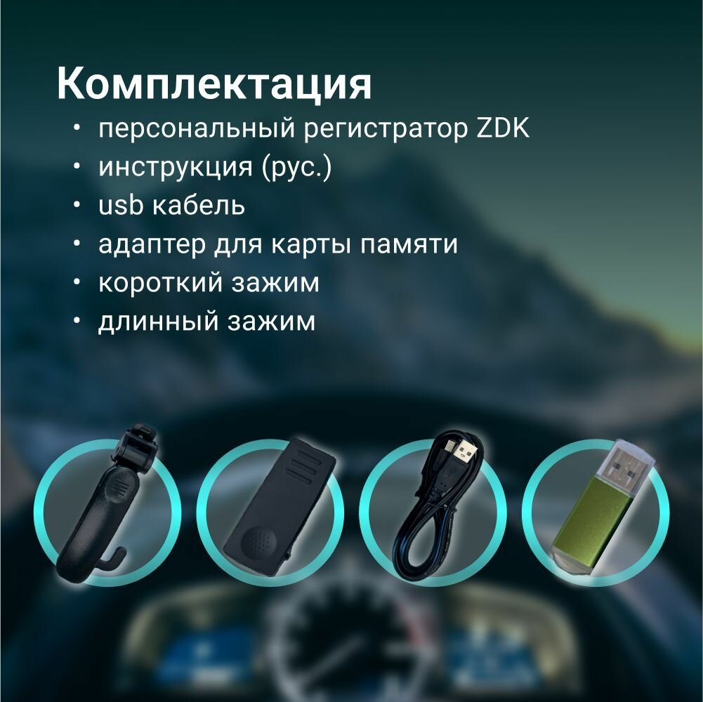 | Дополнительная информация | Комплектация: персональный регистратор ZDK, инструкция (рус.), usb кабель, короткий зажим, длинный зажим, адаптер для карты памяти. |