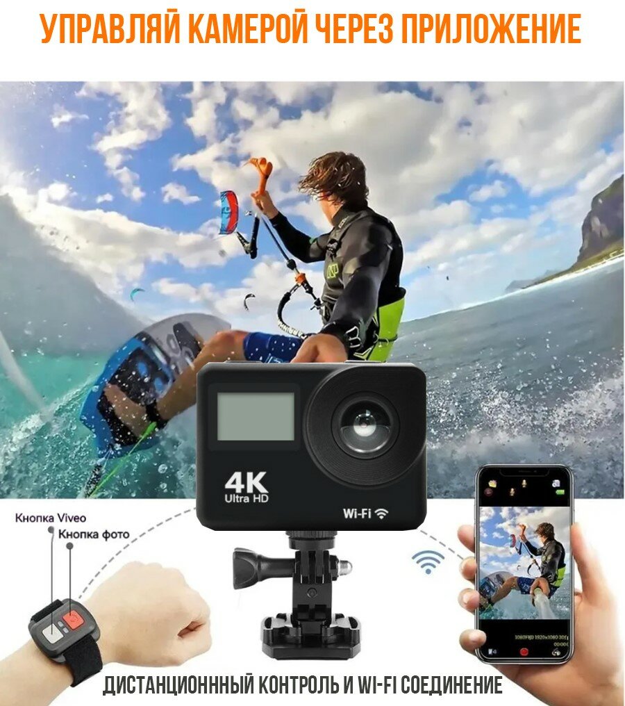 Купить Экшн камера 4k, с аквабоксом