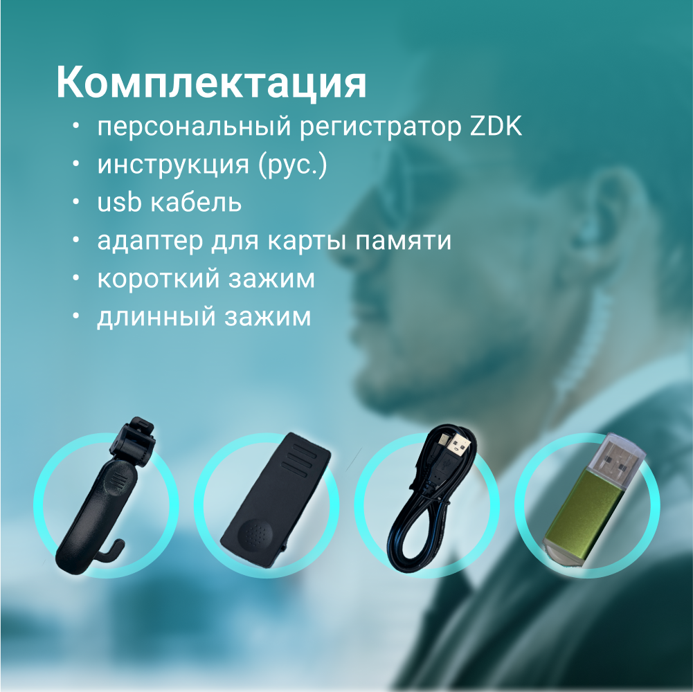 | Дополнительная информация | Комплектация: персональный регистратор ZDK, инструкция (рус.), usb кабель, короткий зажим, длинный зажим, адаптер для карты памяти. |