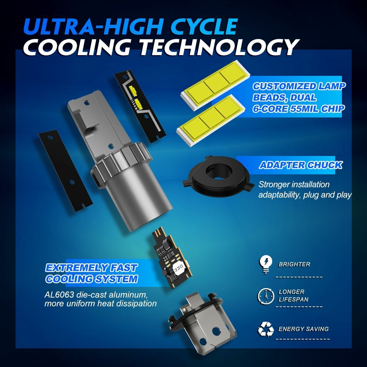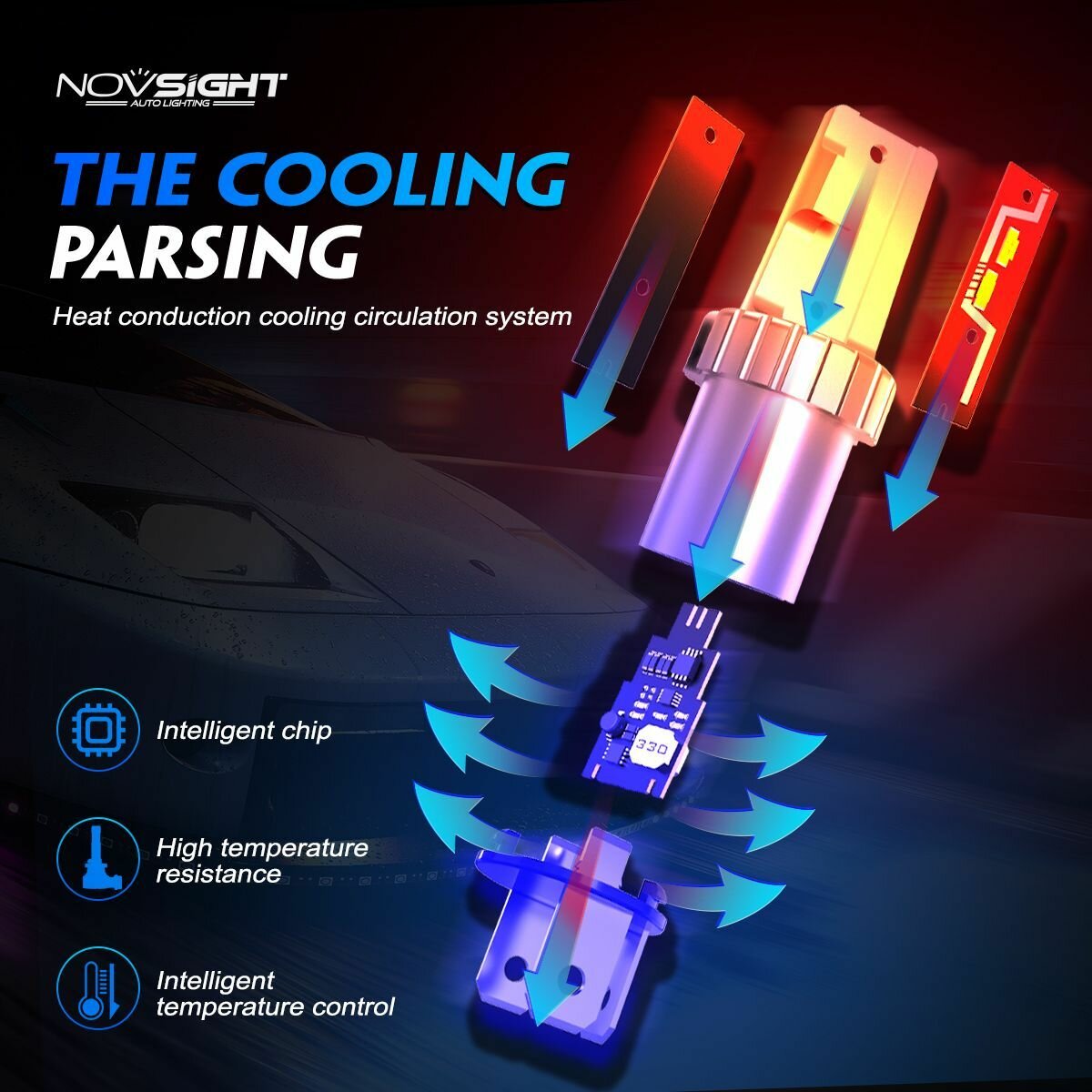 Светодиодная лампа Novsight N57 цоколь H4 40Вт 2шт мини размер 6000К яркий свет LED автомобильная интересное: