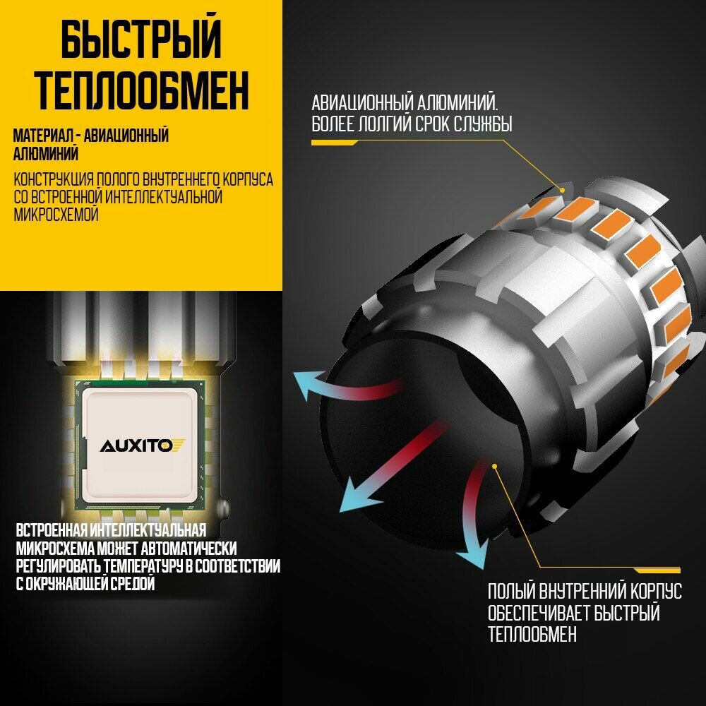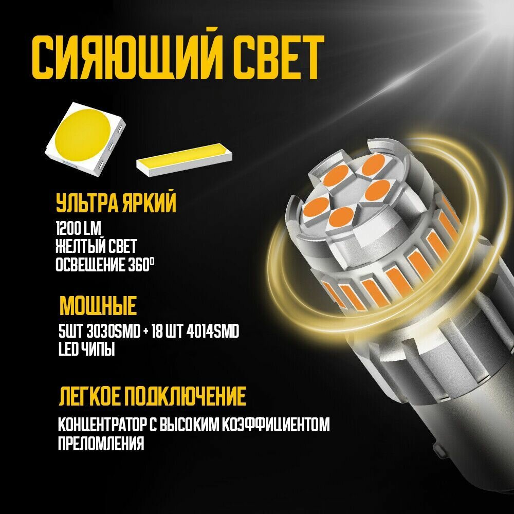 Светодиодная лампа AUXITO 1156 P21W цоколь BA15S 2шт одноконтактная 3000К желтый свет поворотники LED автомобильная интересное: