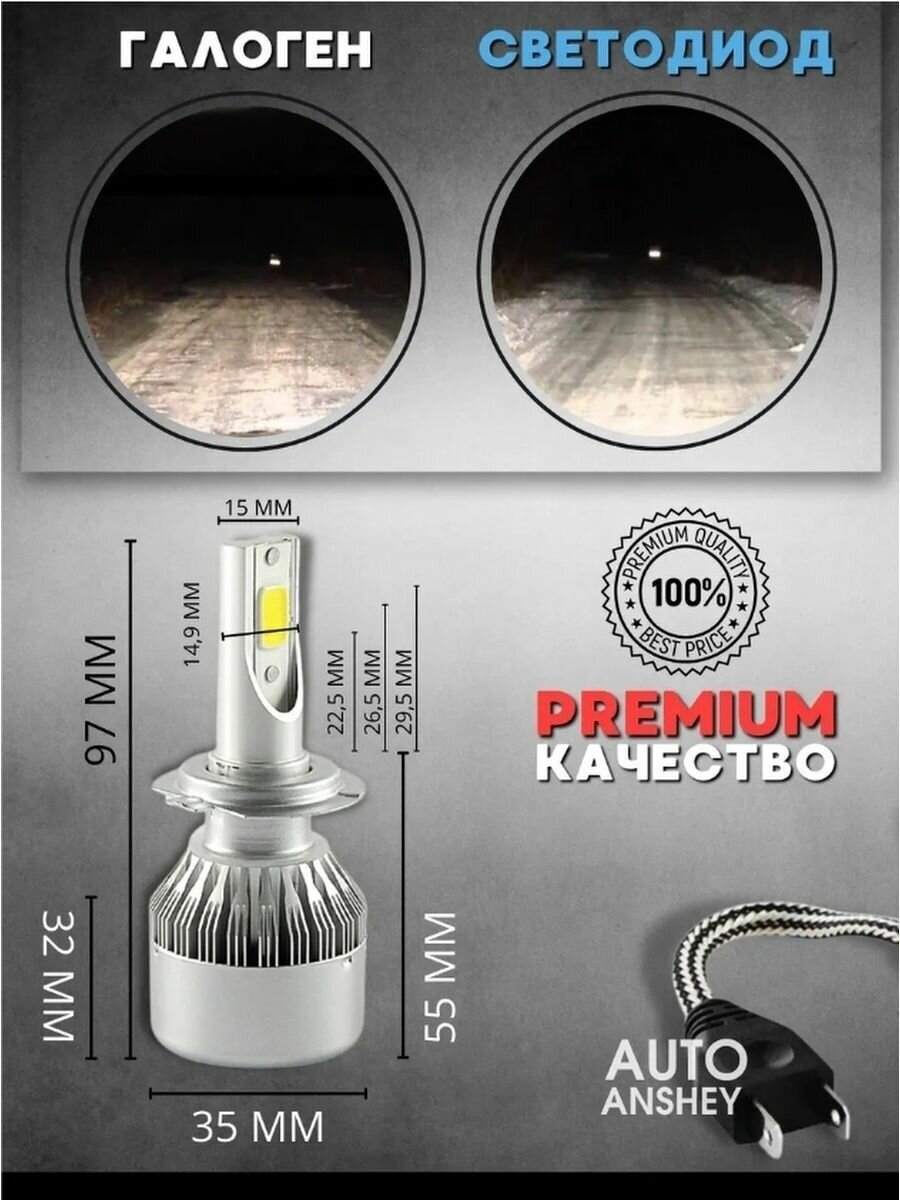 Светодиодные автомобильные лампы LED С6 H7, Автолампы галогеновые 2 шт, 12V интересное:
