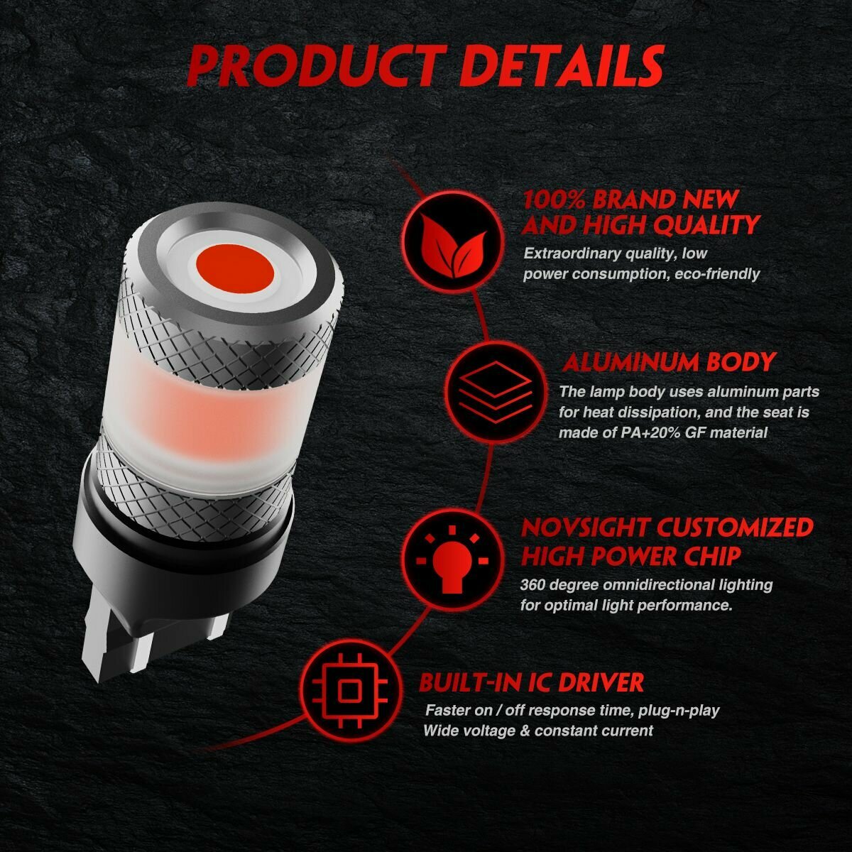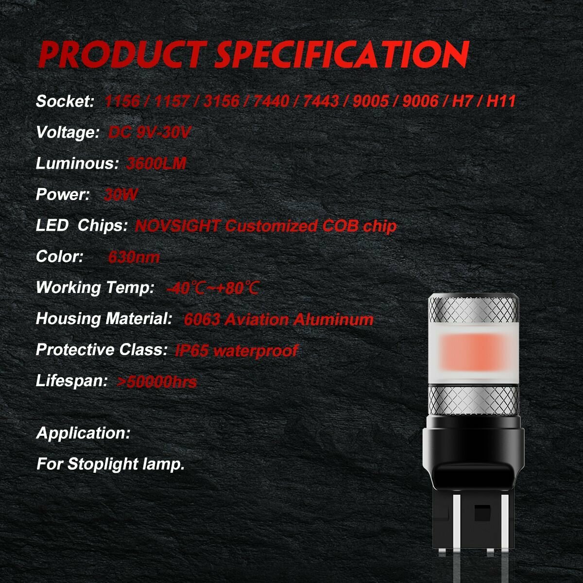 Светодиодная лампа Novsight SL7 T20 7443 W21/5W цоколь W3x16q 2шт двухконтактная красный свет LED автомобильная интересное: