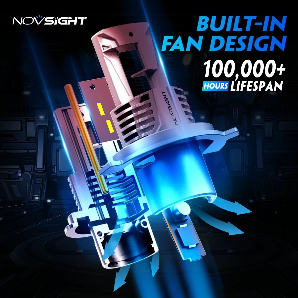 Купить Светодиодная лампа Novsight N66 H4 цоколь P43t 80Вт 2шт 6500К 15000Лм белый свет LED автомобильная