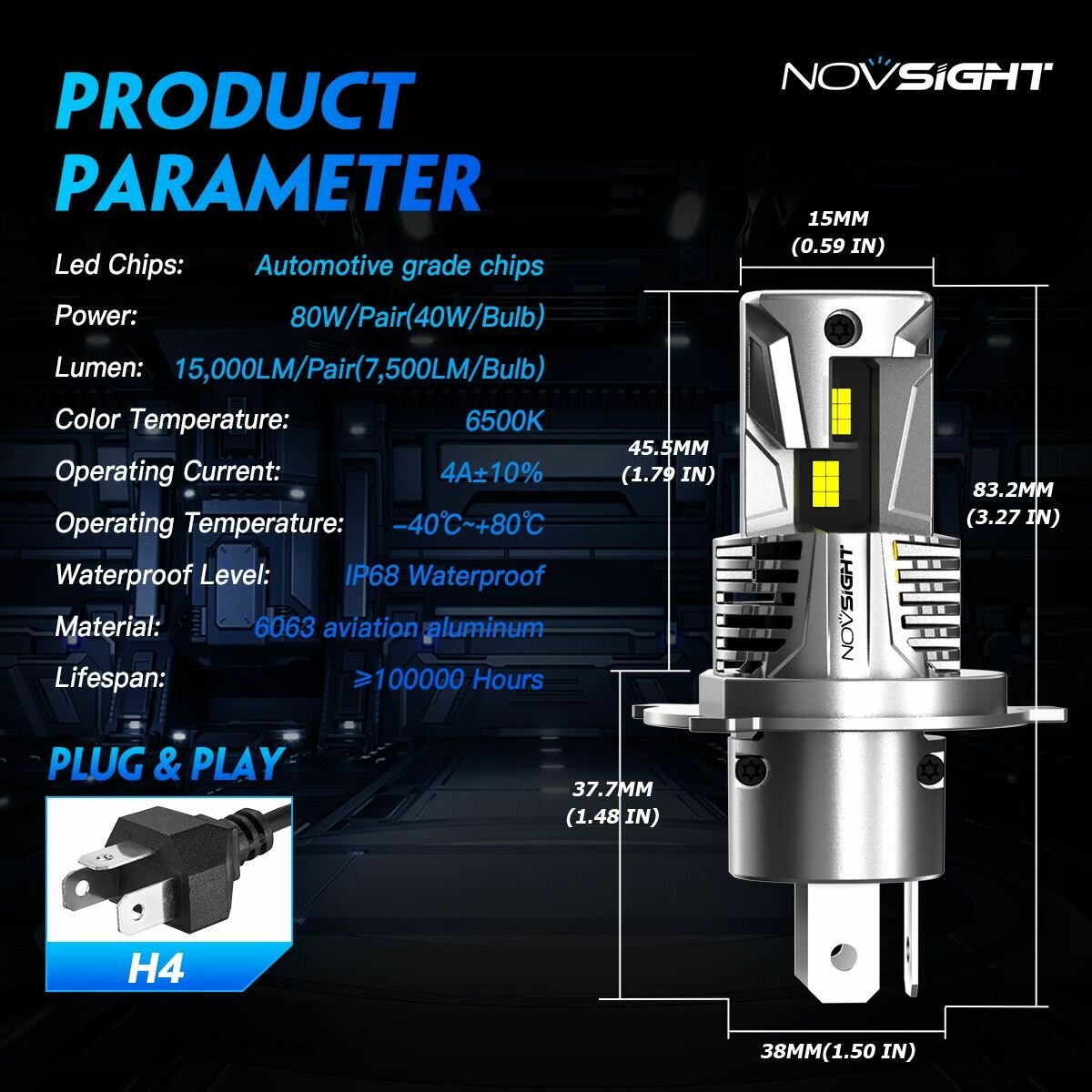 Ниже Вы можете прочитать отзывы на Светодиодная лампа Novsight N66 H4 цоколь P43t 80Вт 2шт 6500К 15000Лм белый свет LED автомобильная, ознакомится с подробными характеристиками, посмотреть интересные обзоры и фотографии на Светодиодная лампа Novsight N66 H4 цоколь P43t 80Вт 2шт 6500К 15000Лм белый свет LED автомобильная.