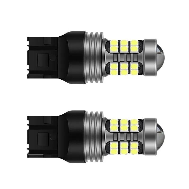Автомобильные светодиодные лампы с линзой LED T20 W21W 7440 6000K яркий белый свет, в фонарь заднего хода 2 шт. интересное: