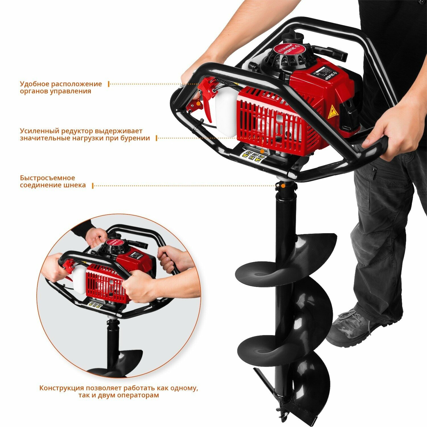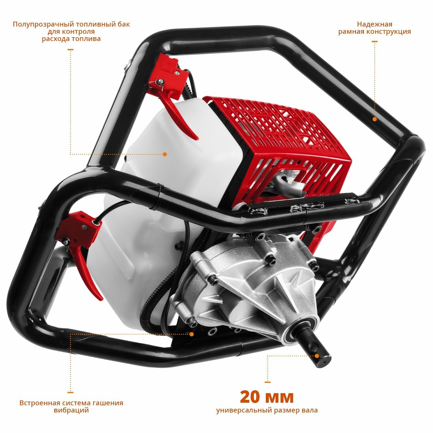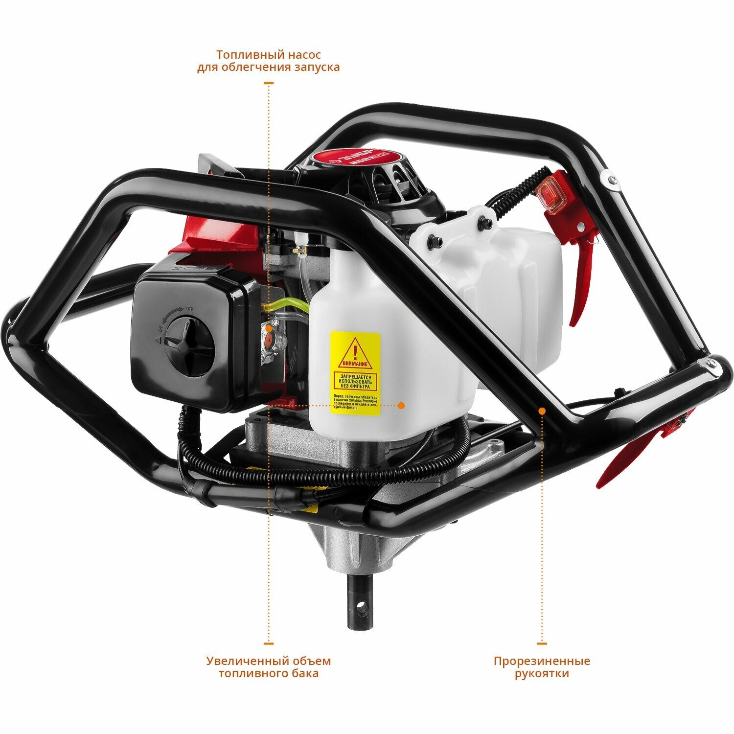 Мотобур (бензобур), d=60-200 мм, 52 см3, 1 оператор, ЗУБР