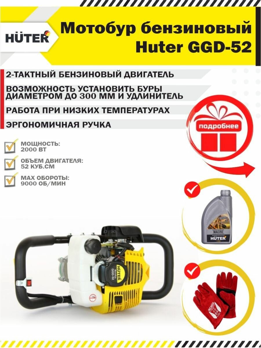 Мотобур бензиновый без шнека GGD-52 интересное: