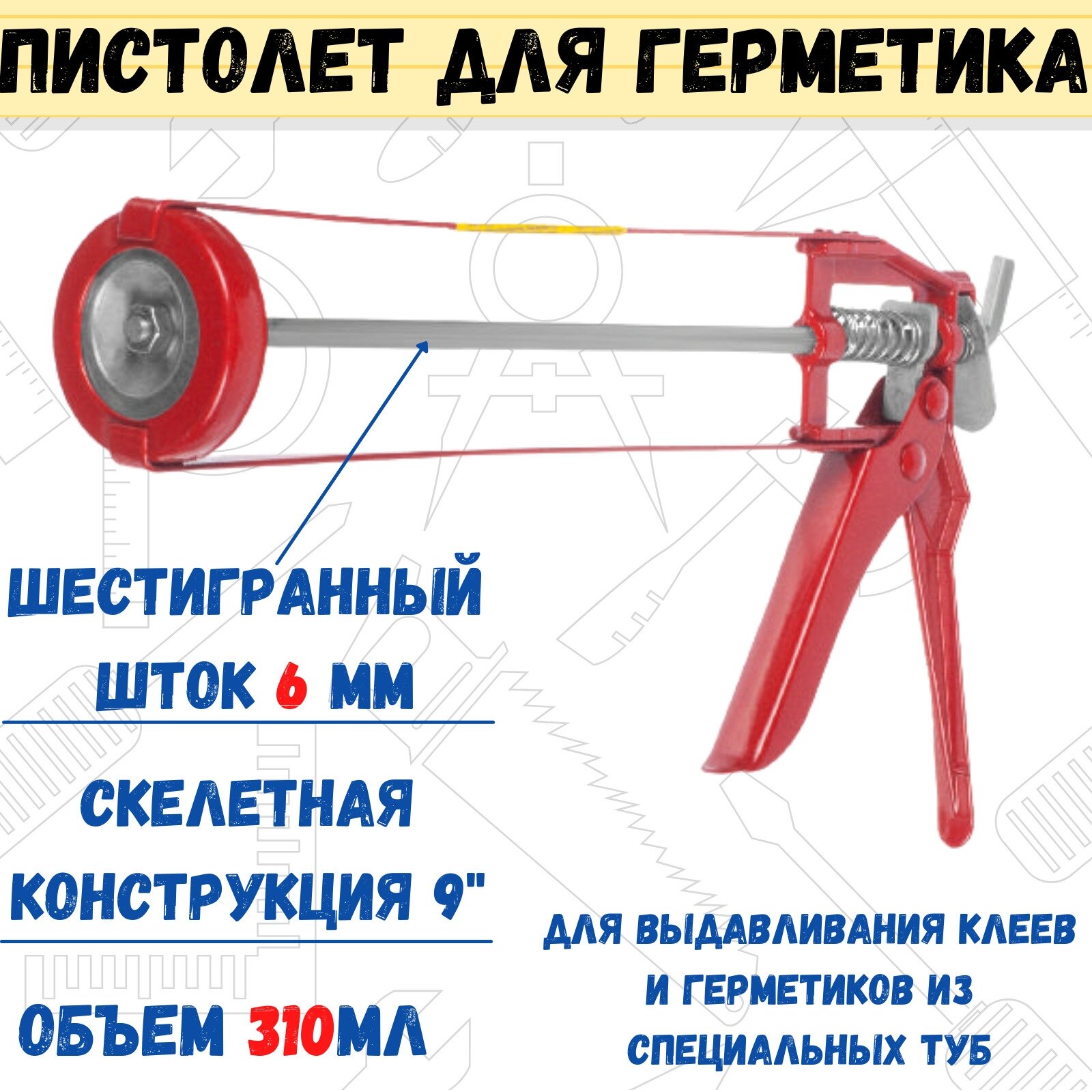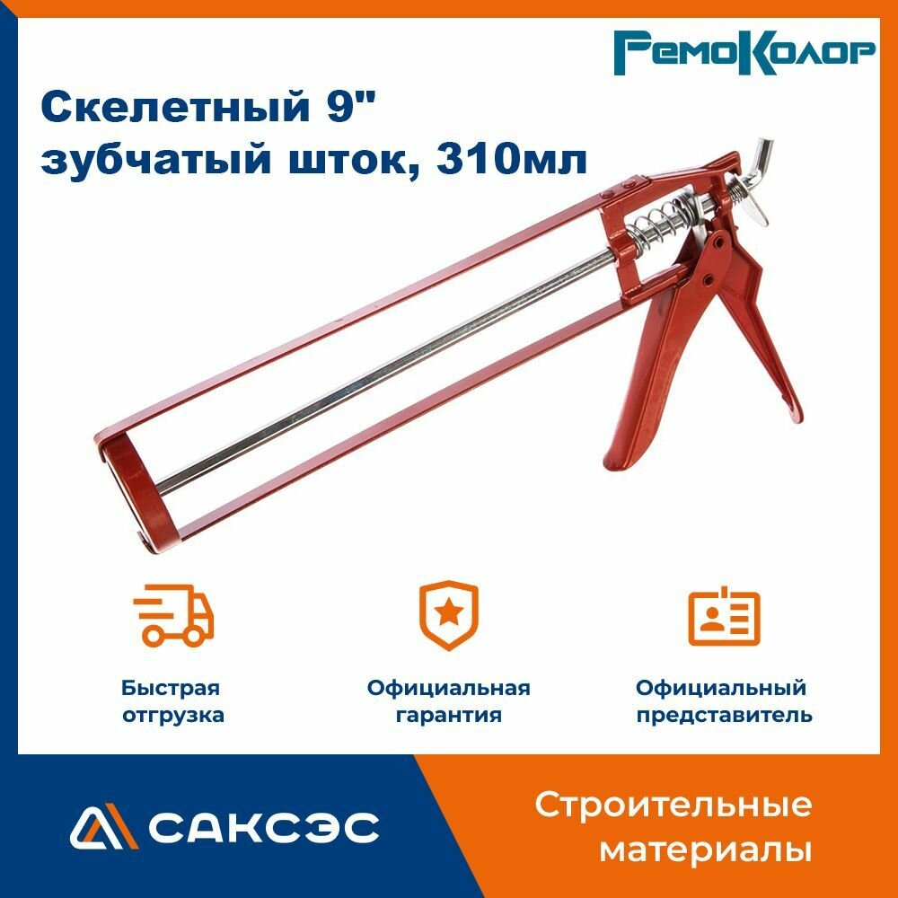 Пистолет для герметика Ремоколор скелетный 9, шестигранный шток /шт,/ 23-1-003 интересное: