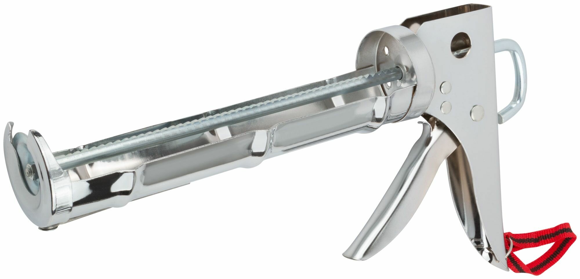 Пистолет для герметика 225 мм полукорпусной, усиленный хромированный, зубчатый шток интересное: